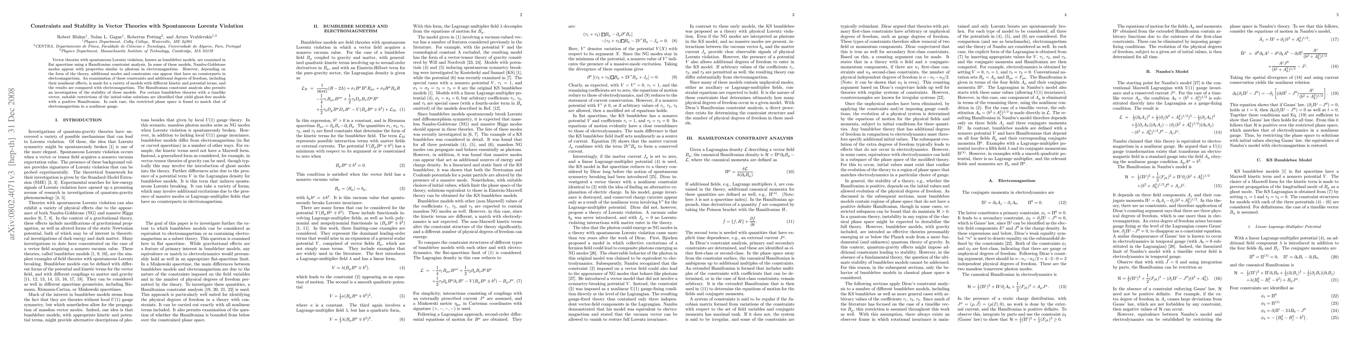 Researchers examined vector theories with spontaneous Lorentz violation to understand their constraints, stability, and properties in flat spacetime, comparing them to electromagnetism. They found that certain models can be stabilized and have a phase space matching that of electromagnetism.