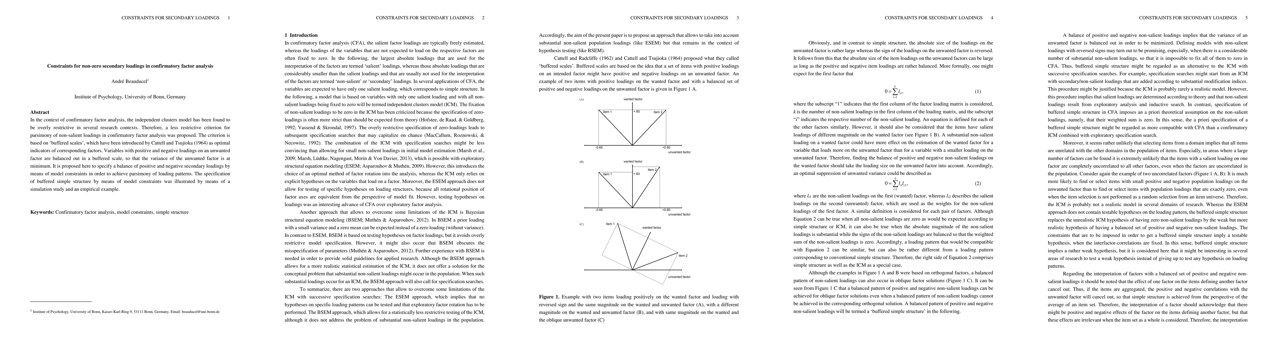 This paper proposes a less restrictive criterion for parsimony in confirmatory factor analysis by introducing model constraints to balance positive and negative secondary loadings, inspired by buffered scales. The method is demonstrated through a simulation study and an empirical example.