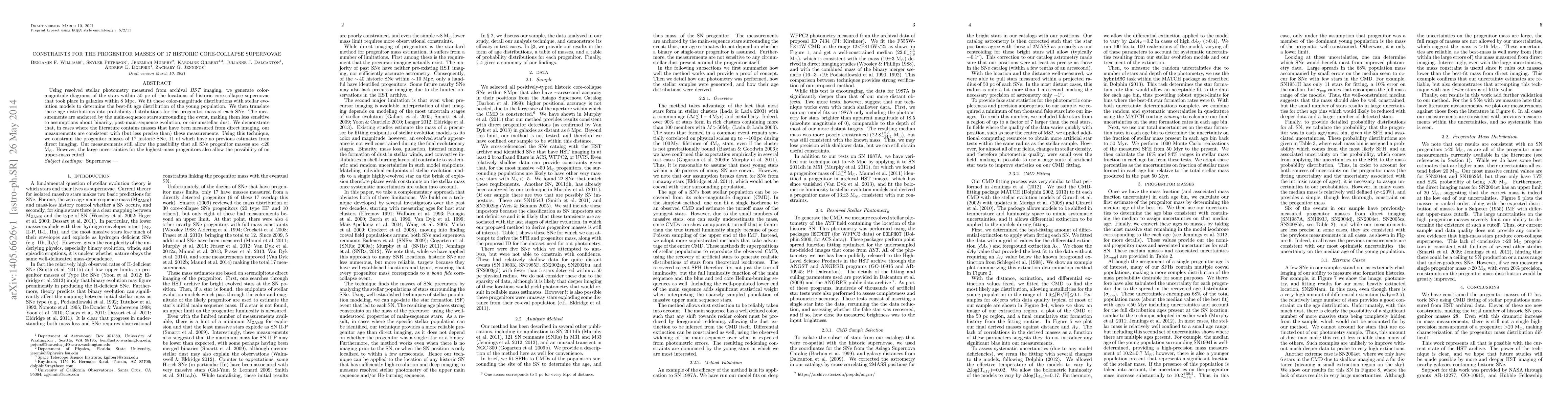 This study uses HST imaging to determine the progenitor masses of 17 historic core-collapse supernovae by analyzing color-magnitude diagrams of nearby stars. The results suggest that 11 of these supernovae lack previous mass estimates, with measurements consistent with but less precise than direct imaging.