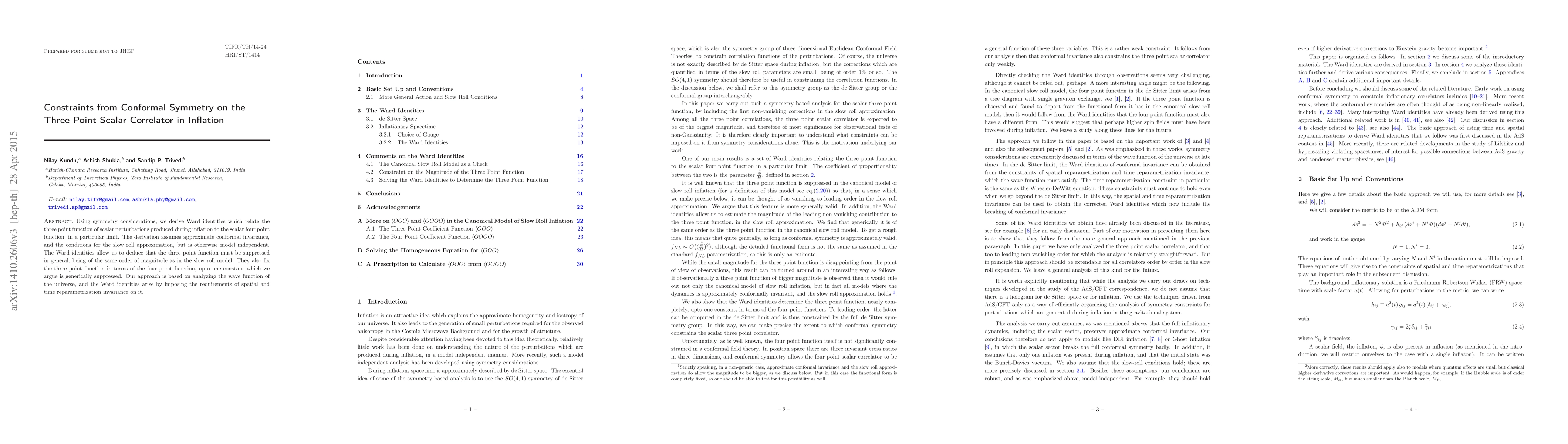Researchers derive a model-independent framework to constrain the three-point scalar correlator in inflation based on conformal symmetry, finding that it must be suppressed to the same order of magnitude as in the slow roll approximation.