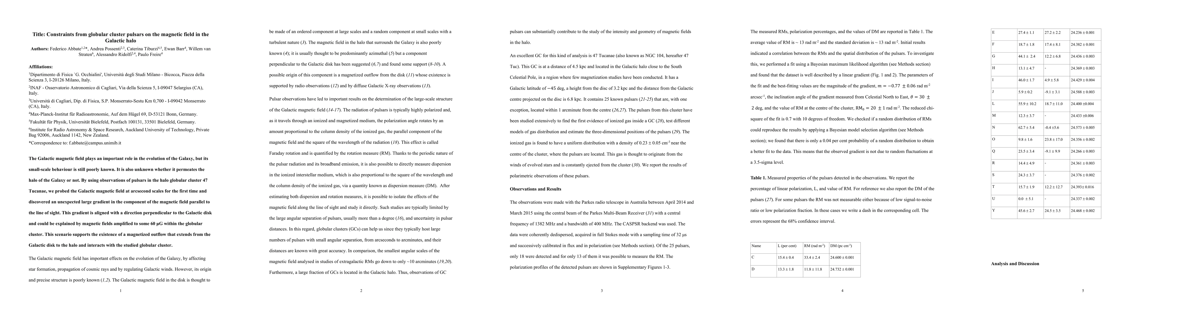 This study reveals a significant gradient in the magnetic field parallel to the line of sight in the Galactic halo, detected through pulsar observations in the globular cluster 47 Tucanae. The findings suggest a magnetized outflow extending from the Galactic disk to the halo, supporting the presence of amplified magnetic fields within the cluster.