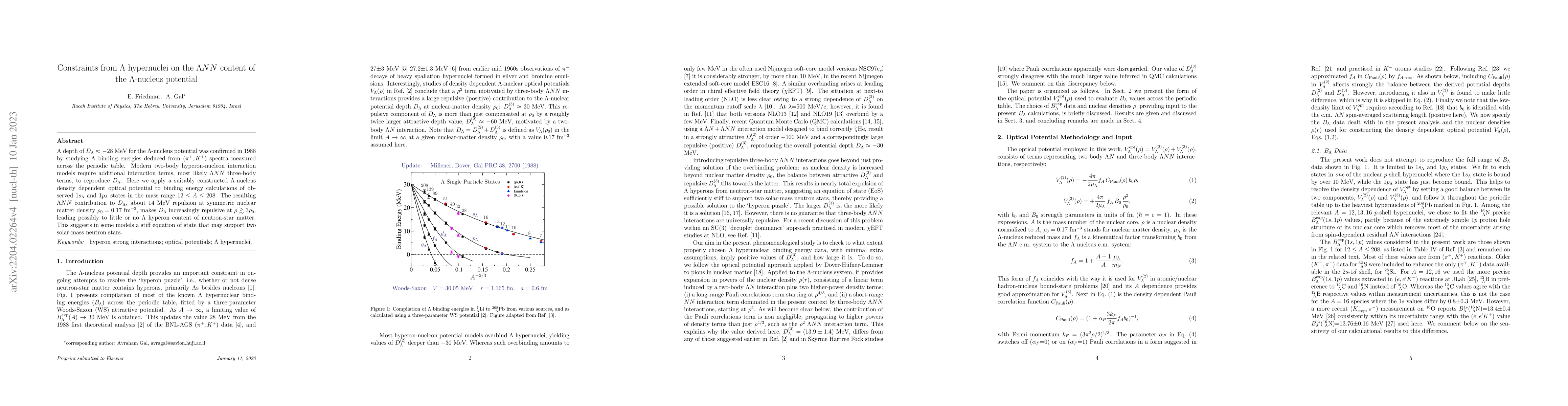 A depth of $D_{\Lambda}\approx -28$ MeV for the $\Lambda$-nucleus potential was confirmed in 1988 by studying $\Lambda$ binding energies deduced from $(\pi^+,K^+)$ spectra measured across the periodic table. Modern two-body hyperon-nucleon interaction models require additional interaction terms, most likely $\Lambda NN$ three-body terms, to reproduce $D_{\Lambda}$. In this work we apply a suitably constructed $\Lambda$-nucleus density dependent optical potential to binding energy calculations of observed $1s_{\Lambda}$ and $1p_{\Lambda}$ states in the mass range $12\leq A\leq 208$. The resulting $\Lambda NN$ contribution to $D_{\Lambda}$, about 14 MeV repulsion at symmetric nuclear matter density $\rho_0=0.17$ fm$^{-3}$, makes $D_{\Lambda}$ increasingly repulsive at $\rho\gtrsim 3\rho_0$, leading possibly to little or no $\Lambda$ hyperon content of neutron-star matter. This suggests in some models a stiff equation of state that may support two solar-mass neutron stars.