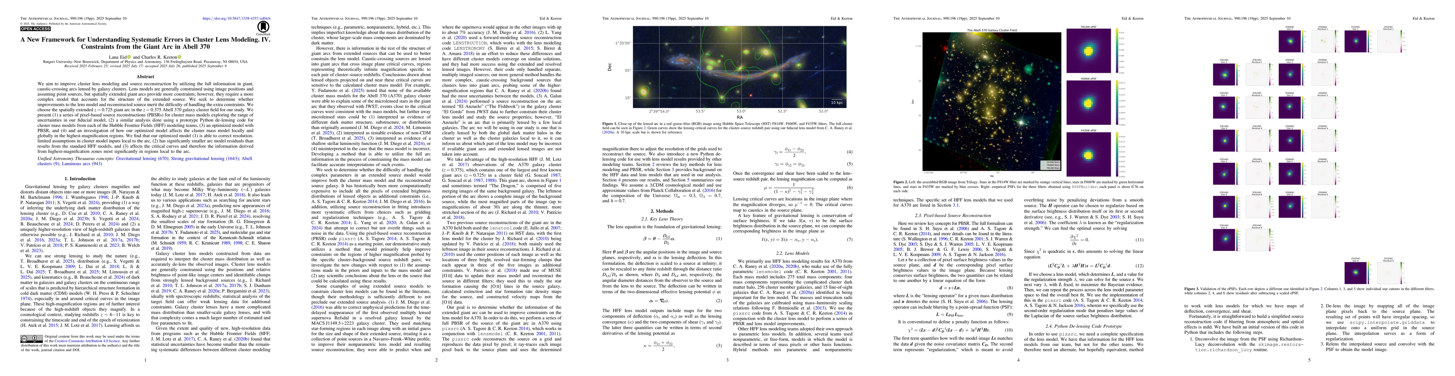 We aim to improve cluster lens modeling and source reconstruction by utilizing the full information in giant, caustic-crossing arcs lensed by galaxy clusters. Lens models are generally constrained using image positions and assuming point sources, but spatially extended giant arcs provide more constraints; however, they require a more complex model that accounts for the structure of the extended source. We seek to determine whether improvements to the lens model and reconstructed source merit the difficulty of handling the extra constraints. We choose the spatially extended $z=0.725$ giant arc in the $z=0.375$ Abell 370 galaxy cluster field for our study. We present 1) a series of pixel-based source reconstructions for cluster mass models exploring the range of uncertainties in our fiducial model, 2) a similar analysis done using a prototype \textit{python} de-lensing code for cluster mass models from each of the Hubble Frontier Fields modeling teams, 3) an optimized model with pixel-based source reconstructions, and 4) and an investigation of how our optimized model affects the cluster mass model locally and globally in the highest-magnification regions. We find that our optimized model 1) is able to correct resolution-limited assumptions in cluster model inputs local to the arc, 2) has significantly smaller arc model residuals than results from the standard Hubble Frontier Fields models, and 3) affects the critical curves and therefore the information derived from highest-magnification zones most significantly in regions local to the arc.
