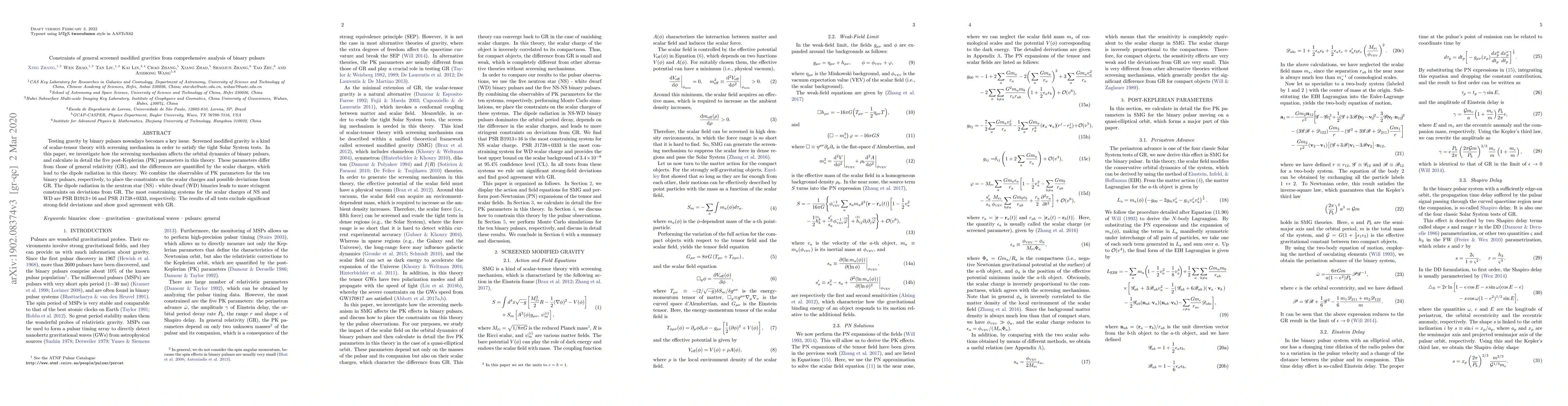 Testing gravity by binary pulsars nowadays becomes a key issue. Screened modified gravity is a kind of scalar-tensor theory with screening mechanism in order to satisfy the tight Solar System tests. In this paper, we investigate how the screening mechanism affects the orbital dynamics of binary pulsars, and calculate in detail the five post-Keplerian (PK) parameters in this theory. These parameters differ from those of general relativity (GR), and the differences are quantified by the scalar charges, which lead to the dipole radiation in this theory. We combine the observables of PK parameters for the ten binary pulsars, respectively, to place the constraints on the scalar charges and possible deviations from GR. The dipole radiation in the neutron star (NS) - white dwarf (WD) binaries leads to more stringent constraints on deviations from GR. The most constraining systems for the scalar charges of NS and WD are PSR~B1913$+$16 and PSR~J1738$+$0333, respectively. The results of all tests exclude significant strong-field deviations and show good agreement with GR.