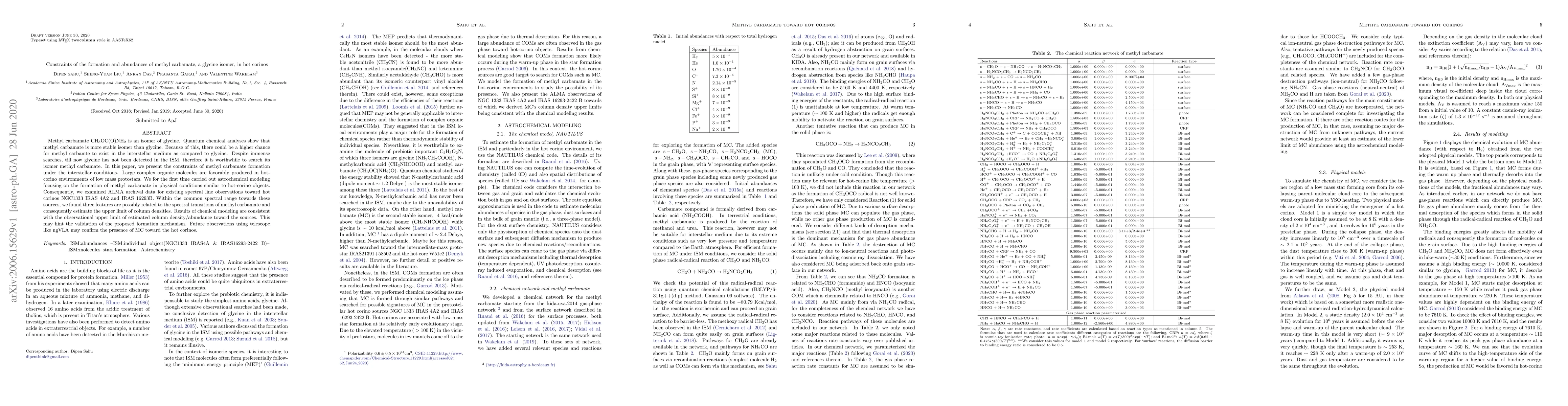This paper investigates the formation and abundance constraints of methyl carbamate, a glycine isomer, in hot corinos. Astrochemical modeling and ALMA data analysis suggest methyl carbamate could form under these conditions, with three spectral features possibly indicating its presence, though its abundance remains low.