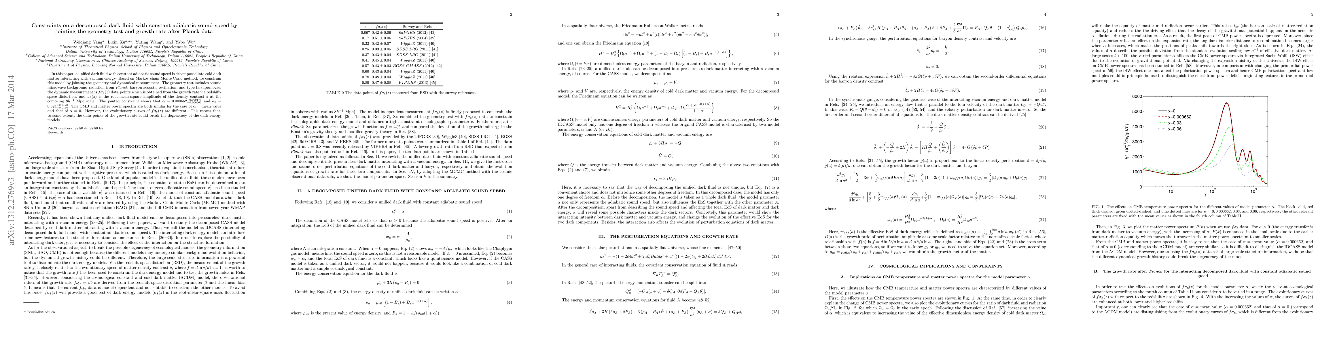 This paper decomposes a unified dark fluid into cold dark matter interacting with vacuum energy, constraining the model using the Markov chain Monte Carlo method. The analysis combines geometry tests (Planck data, baryon acoustic oscillation, and type Ia supernovae) and growth rate measurements ($f\sigma_8(z)$), revealing $\alpha = 0.000662^{+ 0.000173}_{- 0.000662}$ and $\sigma_8 = 0.824^{+ 0.0128}_{- 0.0166}$. The study suggests that growth rate data can help distinguish between dark energy models.