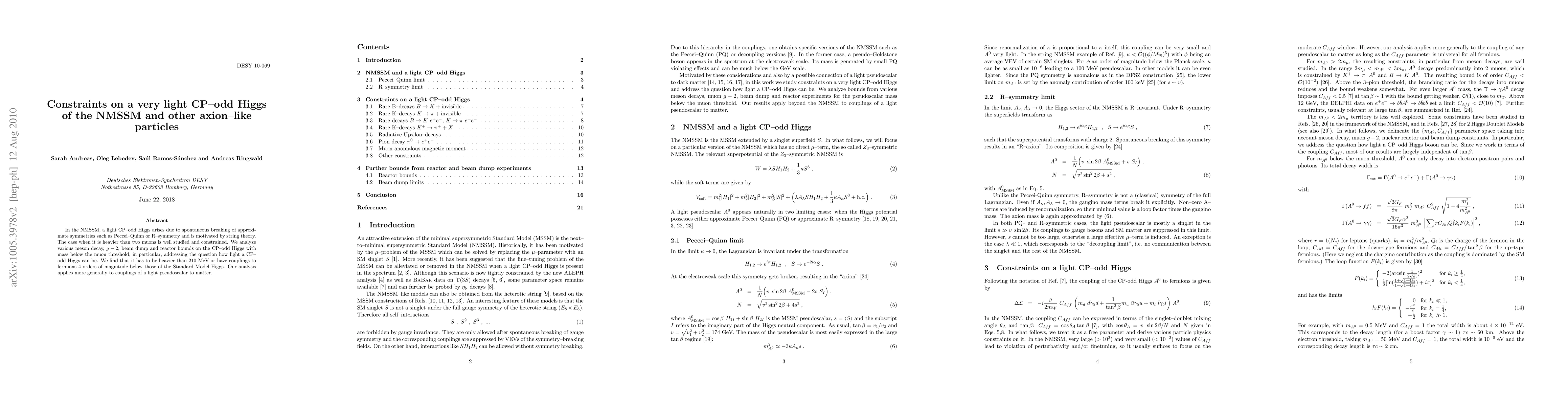This paper investigates constraints on a very light CP-odd Higgs in the Next Minimal Supersymmetric Standard Model (NMSSM), focusing on its mass below the muon threshold. It finds that such a Higgs must weigh more than 210 MeV or have extremely weak fermion couplings, four orders of magnitude smaller than those of the Standard Model Higgs.