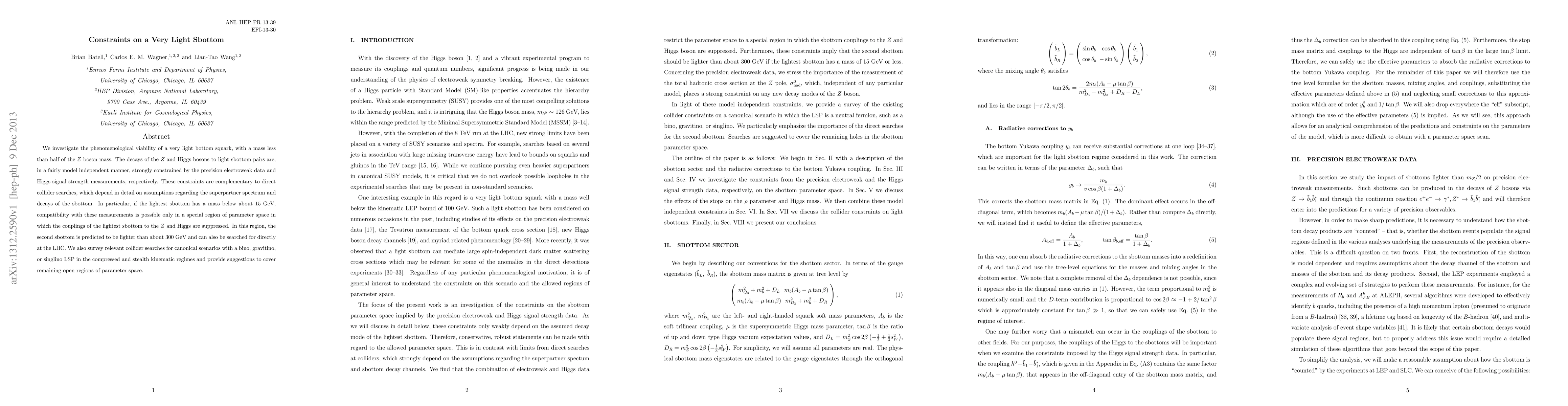 We investigate the phenomenological viability of a very light bottom squark, with a mass less than half of the Z boson mass. The decays of the Z and Higgs bosons to light sbottom pairs are, in a fairly model independent manner, strongly constrained by the precision electroweak data and Higgs signal strength measurements, respectively. These constraints are complementary to direct collider searches, which depend in detail on assumptions regarding the superpartner spectrum and decays of the sbottom. In particular, if the lightest sbottom has a mass below about 15 GeV, compatibility with these measurements is possible only in a special region of parameter space in which the couplings of the lightest sbottom to the Z and Higgs are suppressed. In this region, the second sbottom is predicted to be lighter than about 300 GeV and can also be searched for directly at the LHC. We also survey relevant collider searches for canonical scenarios with a bino, gravitino, or singlino LSP in the compressed and stealth kinematic regimes and provide suggestions to cover remaining open regions of parameter space.