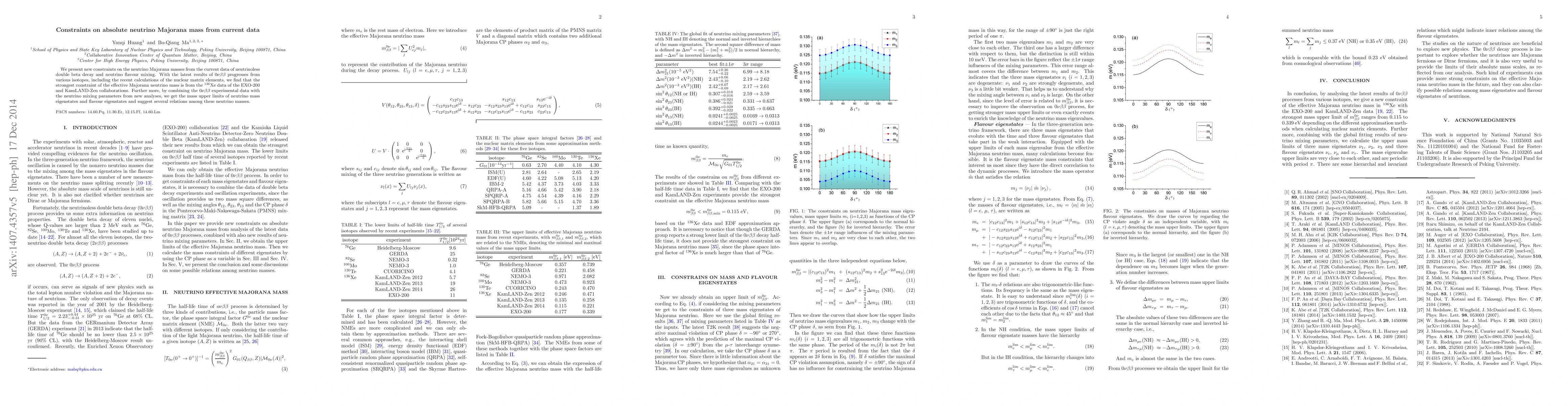 This paper provides updated constraints on the absolute Majorana masses of neutrinos using the latest data from neutrinoless double beta decay and neutrino mixing. The strongest constraint comes from the $^{136}\rm{Xe}$ decay data from the EXO-200 and KamLAND-Zen experiments, and the study also derives upper limits for neutrino mass eigenstates and suggests relationships among them.