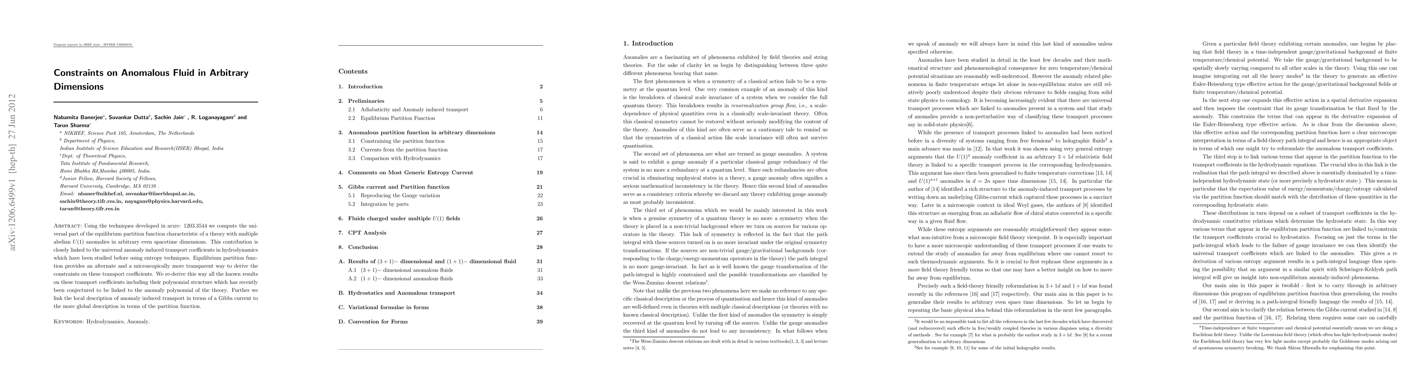 The paper presents a detailed computation of the equilibrium partition function for theories with multiple U(1) anomalies, linking it to anomaly-induced transport coefficients in hydrodynamics.