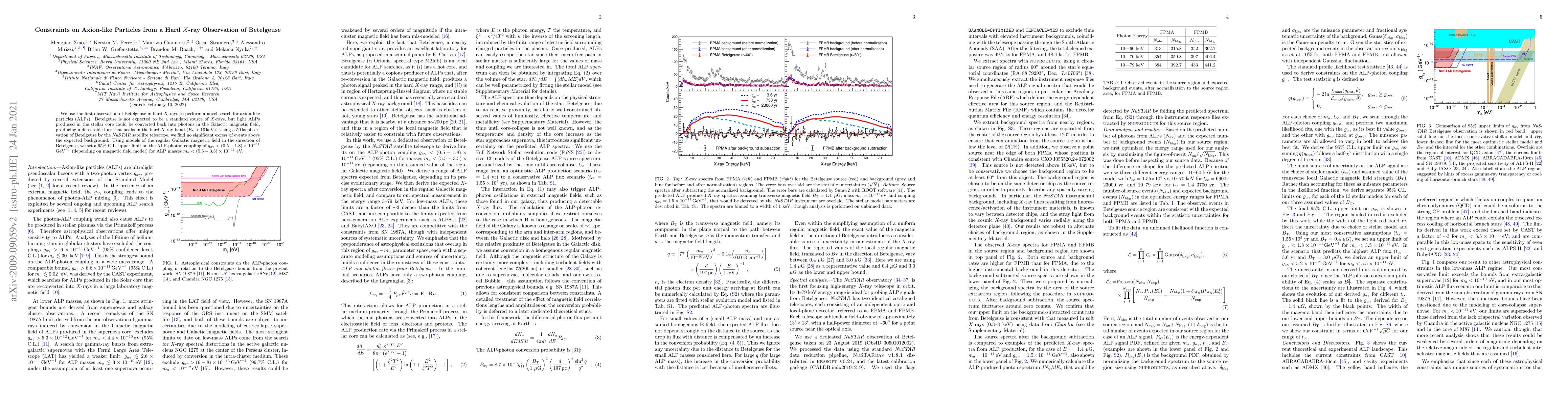This paper uses hard X-ray observations of Betelgeuse to search for axion-like particles (ALPs), finding no significant excess. It sets a 95% confidence limit on the ALP-photon coupling, constraining ALP masses in the range of $3.5 \times 10^{-11}$ to $5.5 \times 10^{-11}$ eV.