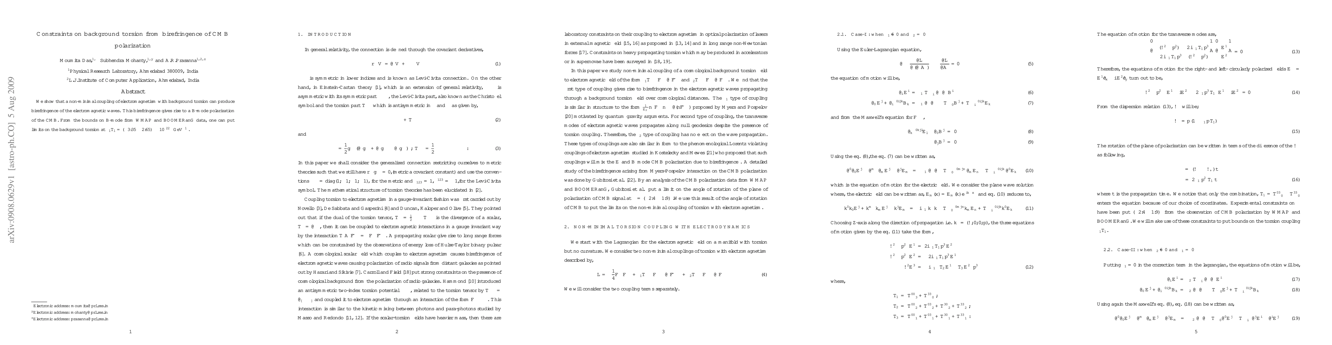 The paper presents a detailed analysis of how background torsion can induce birefringence in electromagnetic waves, leading to B-mode polarization in CMB, and derives equations of motion for electric fields under torsion. It also provides a method to constrain torsion using CMB polarization data.