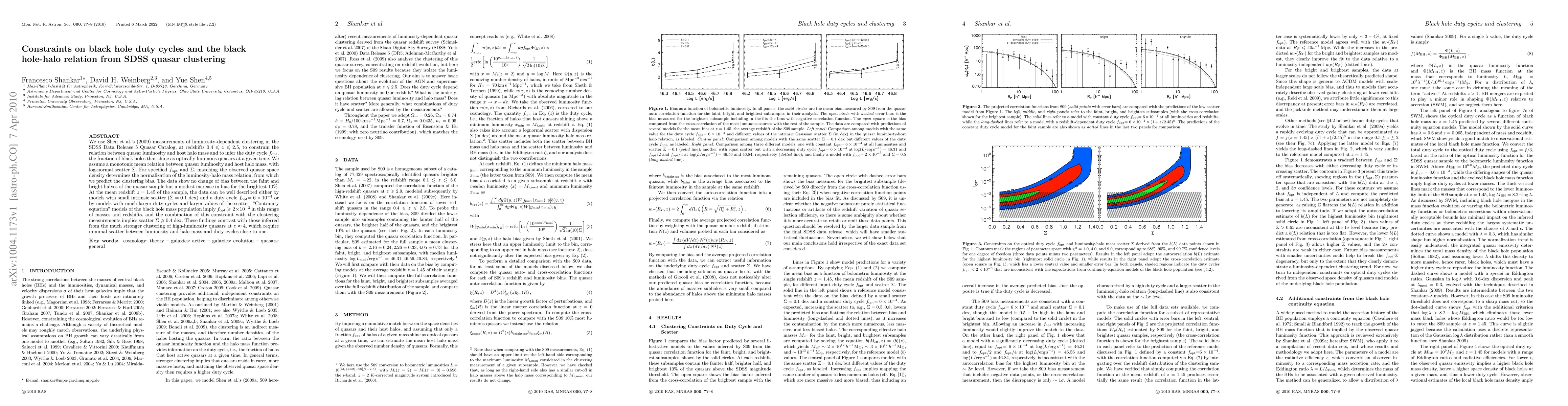 This study uses SDSS quasar clustering data to constrain the black hole-halo relation and the duty cycle of black holes as luminous quasars. The analysis suggests either small intrinsic scatter and a very low duty cycle or larger scatter and higher duty cycles, contrasting with findings from high-redshift quasars.