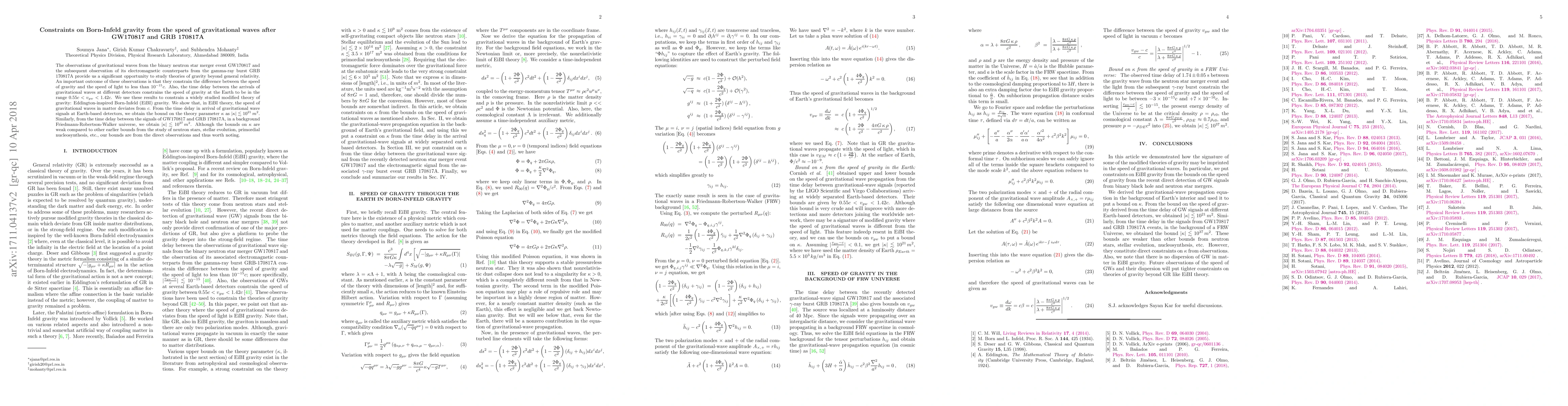 This paper uses observations from the GW170817 neutron star merger and its electromagnetic counterpart GRB 170817A to constrain the speed of gravitational waves, thereby placing limits on Eddington-inspired Born-Infeld (EiBI) gravity. The derived bounds on the theory parameter $\kappa$ are $\vert\kappa\vert \lesssim 10^{21}\, m^2$ and $\vert \kappa \vert \lesssim 10^{37}\, m^2$, highlighting the significance of direct observational constraints on modified gravity theories.