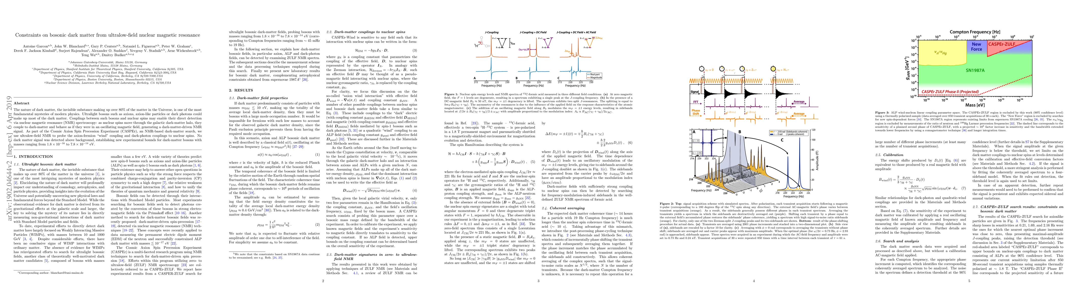 This paper investigates the potential of ultralow-field nuclear magnetic resonance (NMR) to detect ultralight bosonic dark matter, such as axions, through their coupling to nuclear spins. Despite no signal above background, the experiment sets new constraints on the masses of dark-matter bosons in the range from $1.8\times 10^{-16}$ to $7.8\times 10^{-14}$ eV.
