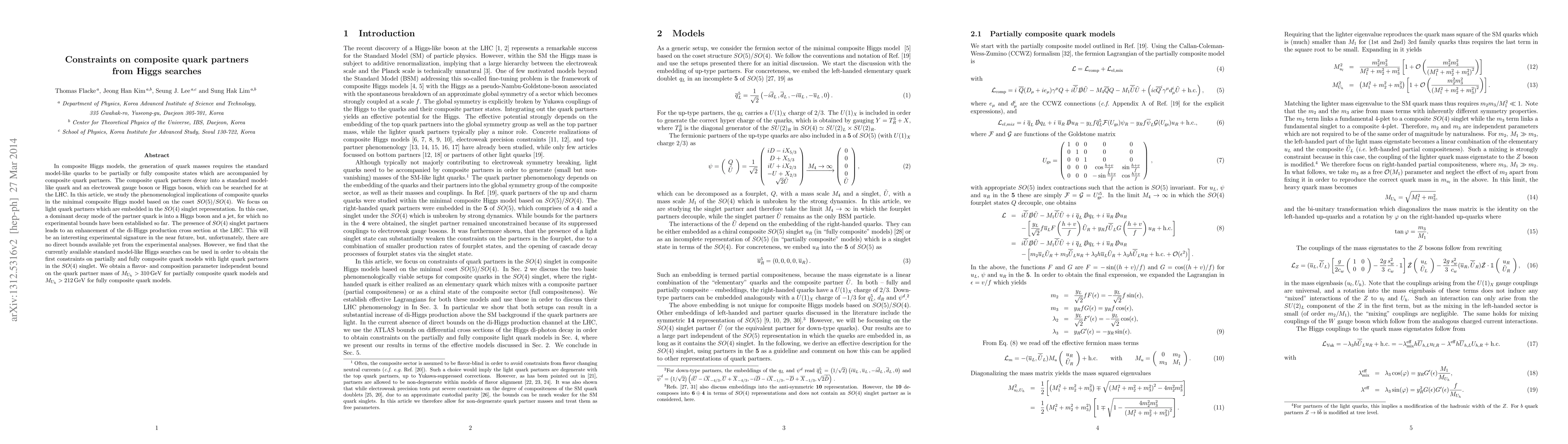 In composite Higgs models, the generation of quark masses requires the standard model-like quarks to be partially or fully composite states which are accompanied by composite quark partners. The composite quark partners decay into a standard model-like quark and an electroweak gauge boson or Higgs boson, which can be searched for at the LHC. In this article, we study the phenomenological implications of composite quarks in the minimal composite Higgs model based on the coset $SO(5)/SO(4)$. We focus on light quark partners which are embedded in the $SO(4)$ singlet representation. In this case, a dominant decay mode of the partner quark is into a Higgs boson and a jet, for which no experimental bounds have been established so far. The presence of $SO(4)$ singlet partners leads to an enhancement of the di-Higgs production cross section at the LHC. This will be an interesting experimental signature in the near future, but, unfortunately, there are no direct bounds available yet from the experimental analyses. However, we find that the currently available standard model-like Higgs searches can be used in order to obtain the first constraints on partially and fully composite quark models with light quark partners in the $SO(4)$ singlet. We obtain a flavor- and composition parameter independent bound on the quark partner mass of $M_{U_h} > 310 \mbox{ GeV}$ for partially composite quark models and $M_{U_h} > 212 \mbox{ GeV}$ for fully composite quark models.