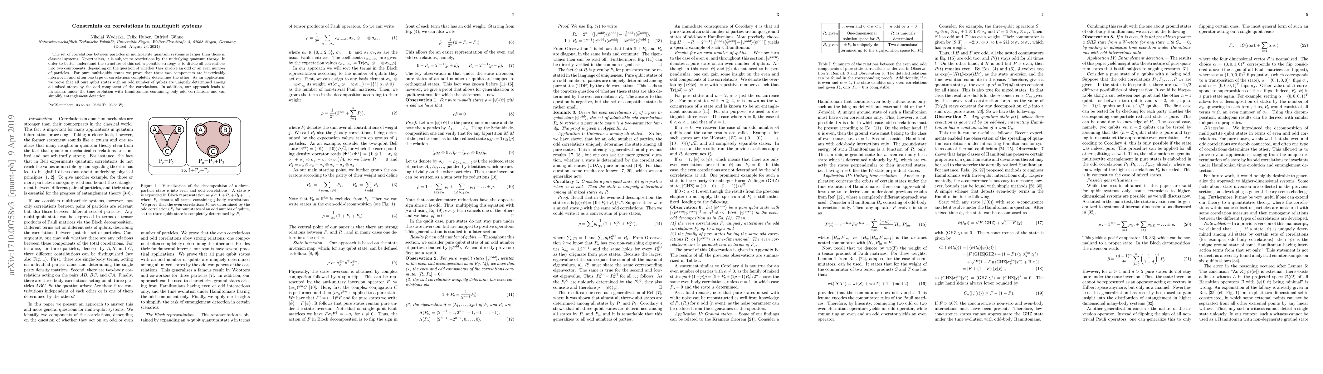 This paper investigates the correlations in multiqubit quantum systems, showing that correlations involving an odd or even number of particles are deeply interconnected. It demonstrates that pure qubit states with an odd number of qubits can be uniquely identified by their odd-numbered correlations, and proposes invariants for time evolution under Hamiltonians with odd correlations, aiding in entanglement detection.