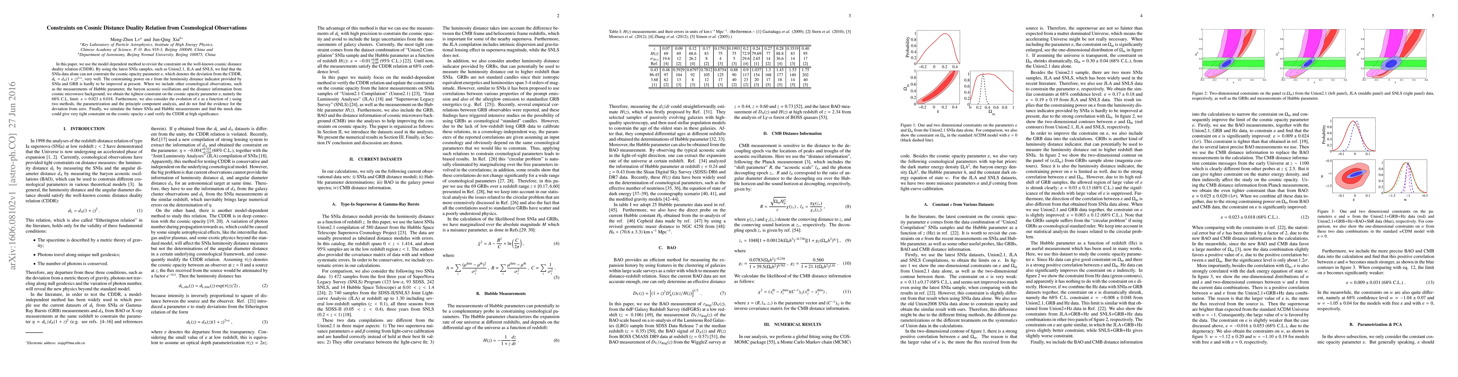In this paper, we use the model dependent method to revisit the constraint on the well-known cosmic distance duality relation (CDDR). By using the latest SNIa samples, such as Union2.1, JLA and SNLS, we find that the SNIa data alone can not constrain the cosmic opacity parameter $\varepsilon$, which denotes the deviation from the CDDR, $d_{\rm L} = d_{\rm A}(1+z)^{2+\varepsilon}$, very well. The constraining power on $\varepsilon$ from the luminosity distance indicator provided by SNIa and GRB is hardly to be improved at present. When we include other cosmological observations, such as the measurements of Hubble parameter, the baryon acoustic oscillations and the distance information from cosmic microwave background, we obtain the tightest constraint on the cosmic opacity parameter $\varepsilon$, namely the 68\% C.L. limit: $\varepsilon=0.023\pm0.018$. Furthermore, we also consider the evolution of $\varepsilon$ as a function of $z$ using two methods, the parametrization and the principle component analysis, and do not find the evidence for the deviation from zero. Finally, we simulate the future SNIa and Hubble measurements and find the mock data could give very tight constraint on the cosmic opacity $\varepsilon$ and verify the CDDR at high significance.