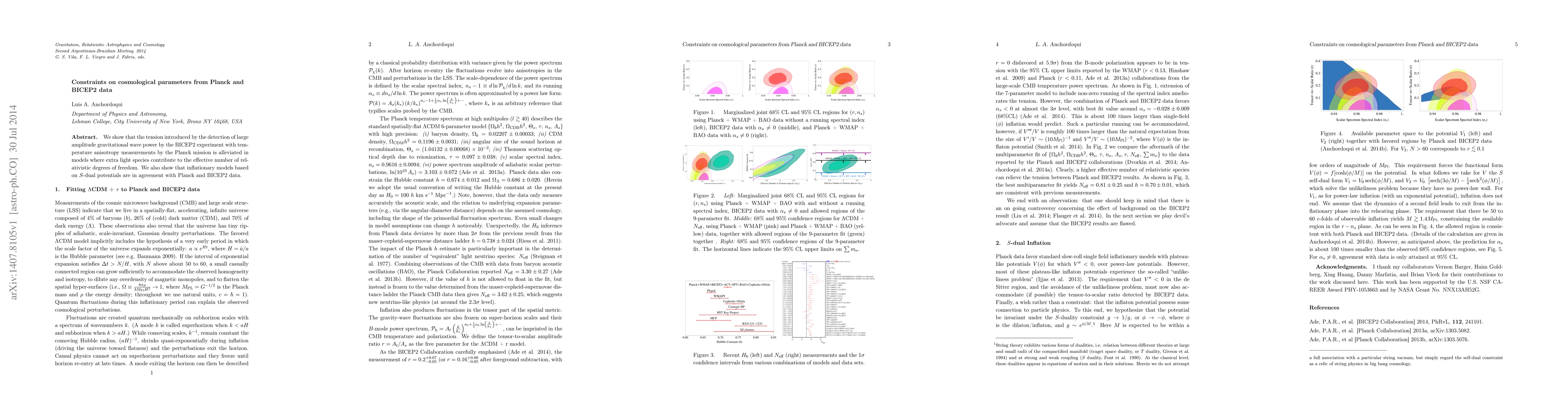 This paper alleviates the tension between BICEP2's detection of gravitational wave power and Planck's temperature anisotropy measurements by considering models with extra light species. It also finds that inflationary models based on S-dual potentials align well with both Planck and BICEP2 data.