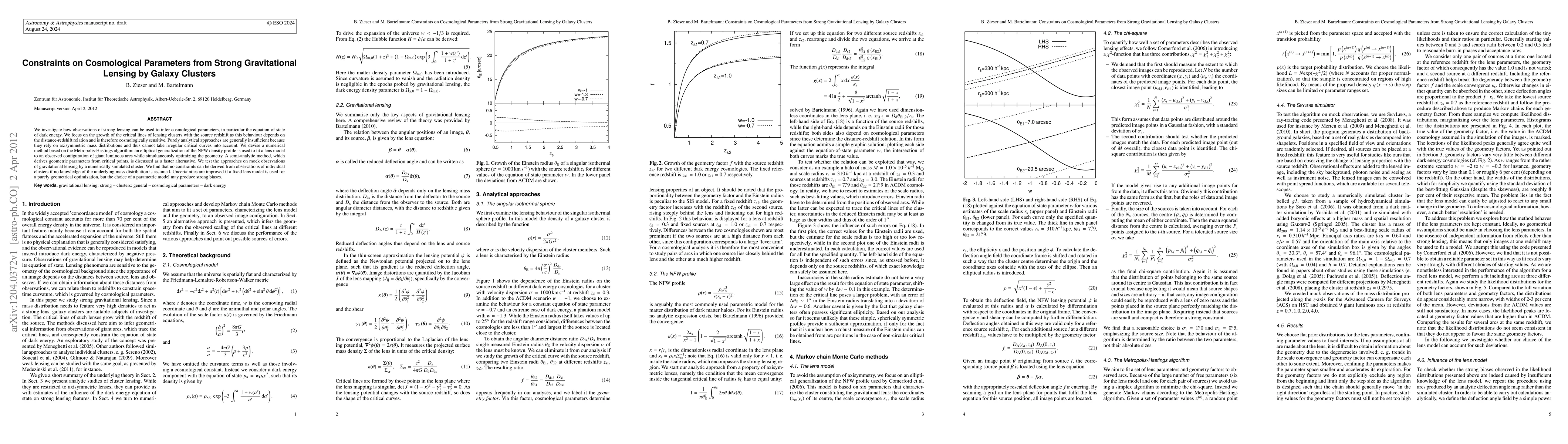 This paper explores the use of strong gravitational lensing by galaxy clusters to infer cosmological parameters, particularly the equation of state of dark energy. The authors develop a numerical method based on the Metropolis-Hastings algorithm to fit lens models to observed arcs, finding that individual clusters alone cannot provide constraints without assumptions about mass distribution.
