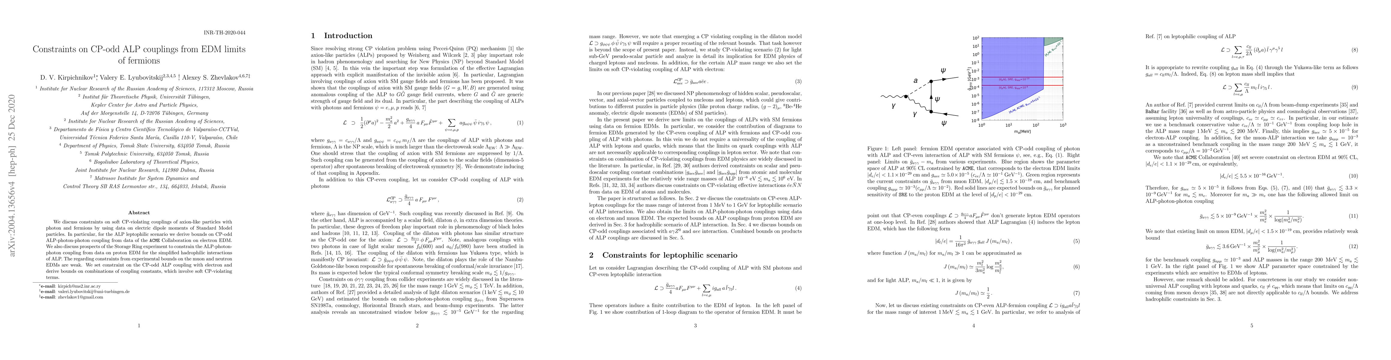 The paper presents detailed analysis and derivations of constraints on ALP couplings using EDM data, including leptophilic and hadrophilic scenarios.