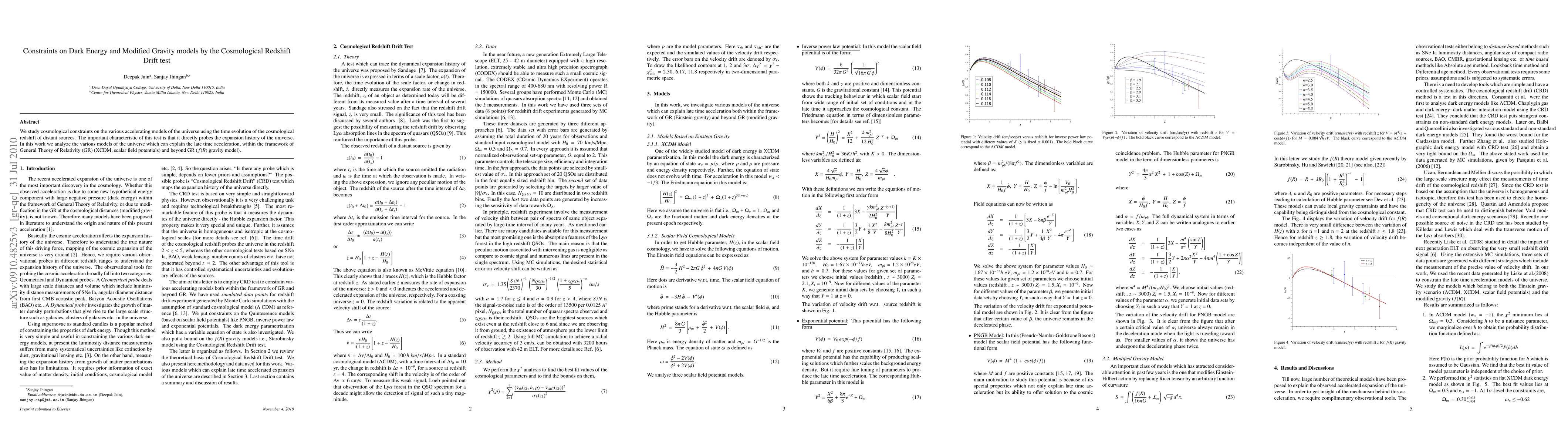 We study cosmological constraints on the various accelerating models of the universe using the time evolution of the cosmological redshift of distant sources. The important characteristic of this test is that it directly probes the expansion history of the universe. In this work we analyze the various models of the universe which can explain the late time acceleration, within the framework of General Theory of Relativity (GR) (XCDM, scalar field potentials) and beyond GR (f(R) gravity model).