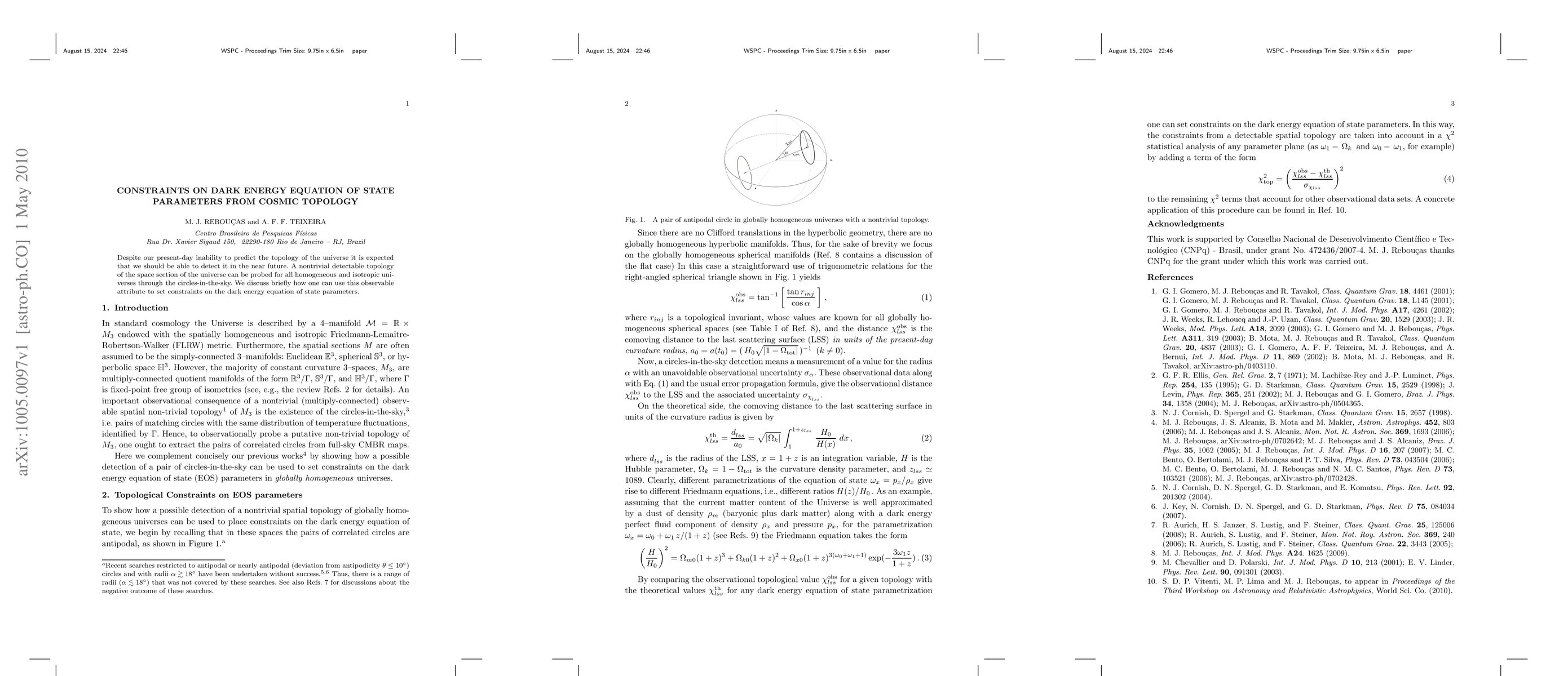 Despite our present-day inability to predict the topology of the universe it is expected that we should be able to detect it in the near future. A nontrivial detectable topology of the space section of the universe can be probed for all homogeneous and isotropic universes through the circles-in-the-sky. We discuss briefly how one can use this observable attribute to set constraints on the dark energy equation of state parameters.