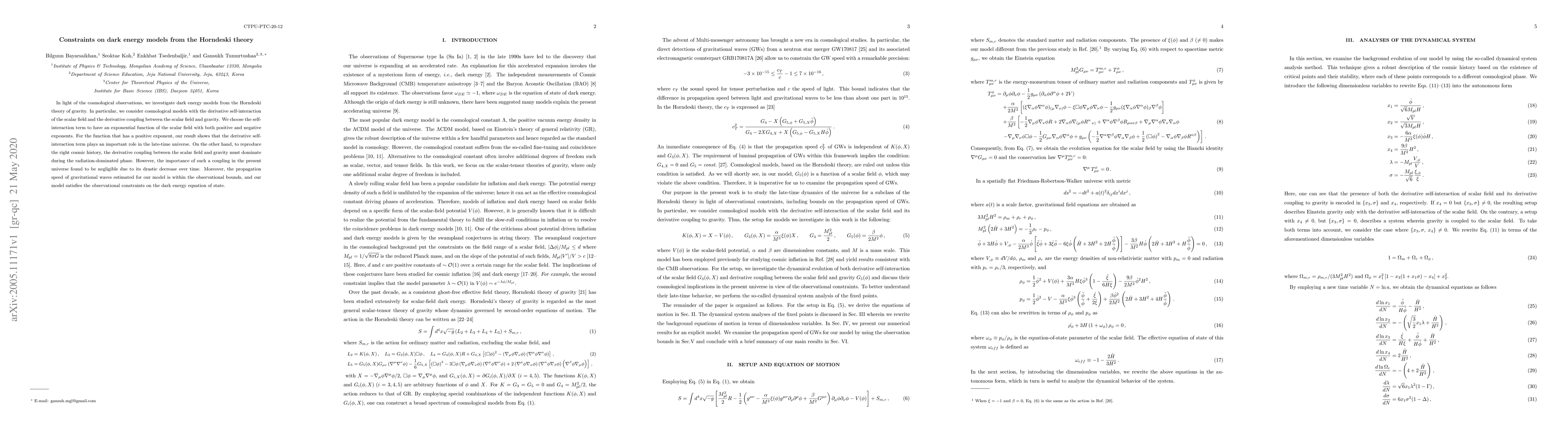 This paper examines dark energy models derived from the Horndeski theory, focusing on the role of scalar field self-interaction and its coupling with gravity. It finds that while self-interaction is crucial in the late universe, the coupling's significance diminishes over time, and the model's gravitational wave speed and dark energy equation of state comply with observational constraints.