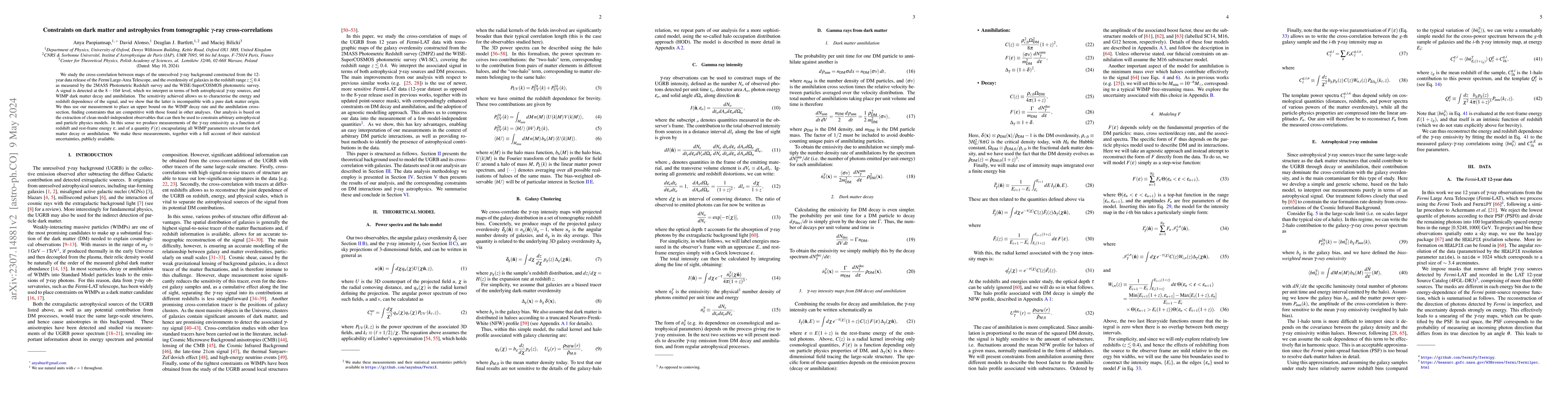 This study investigates $\gamma$-ray cross-correlations between Fermi telescope data and galaxy overdensities, detecting a $8-10\sigma$ signal interpreted as both astrophysical sources and WIMP dark matter decay/annihilation. The analysis sets competitive constraints on WIMP decay rate and annihilation cross-section, ruling out a pure dark matter origin for the signal.