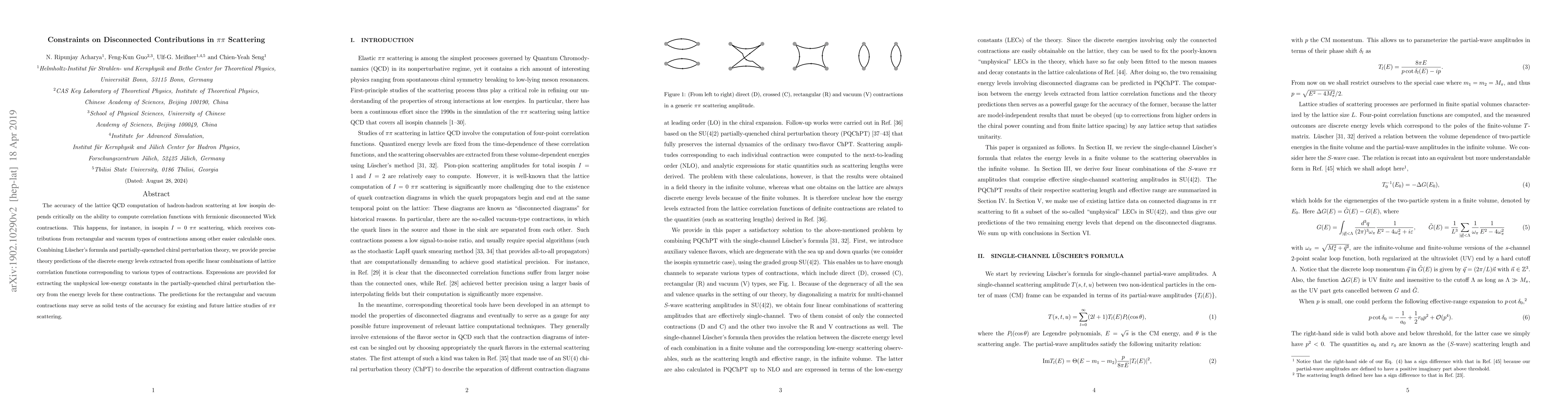 The accuracy of the lattice QCD computation of hadron-hadron scattering at low isospin depends critically on the ability to compute correlation functions with fermionic disconnected Wick contractions. This happens, for instance, in isospin $I=0$ $\pi\pi$ scattering, which receives contributions from rectangular and vacuum types of contractions among other easier calculable ones. Combining L\"{u}scher's formula and partially-quenched chiral perturbation theory, we provide precise theory predictions of the discrete energy levels extracted from specific linear combinations of lattice correlation functions corresponding to various types of contractions. Expressions are provided for extracting the unphysical low-energy constants in the partially-quenched chiral perturbation theory from the energy levels for these contractions. The predictions for the rectangular and vacuum contractions may serve as solid tests of the accuracy for existing and future lattice studies of $\pi\pi$ scattering.