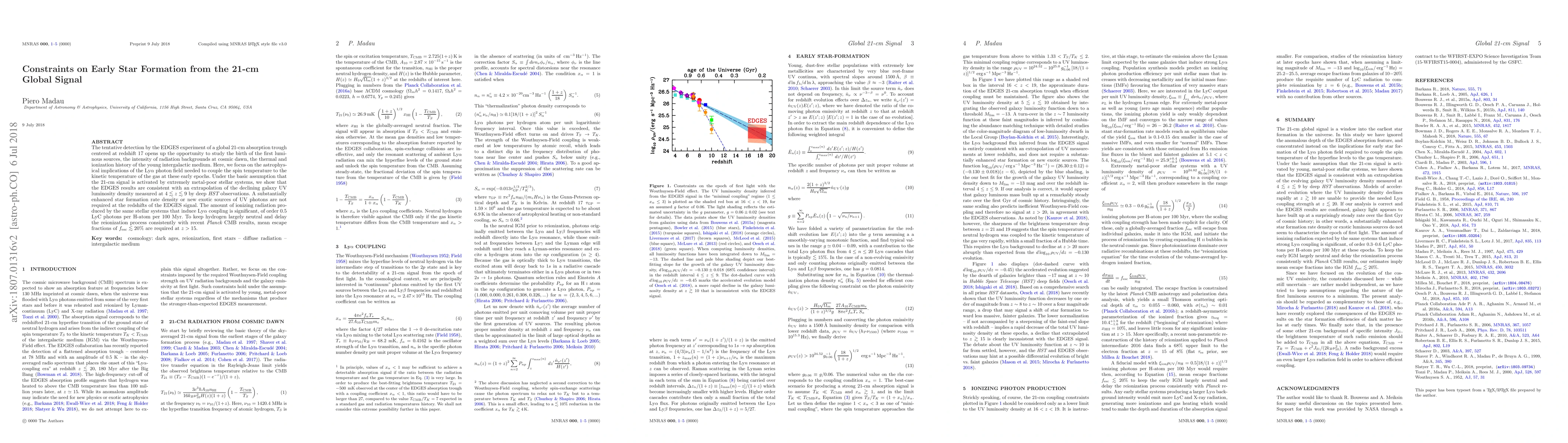 The paper presents a detailed analysis of the Lyman-alpha photon field's role in coupling the spin temperature to the kinetic temperature of the gas, providing constraints on early star formation based on the EDGES 21-cm signal.