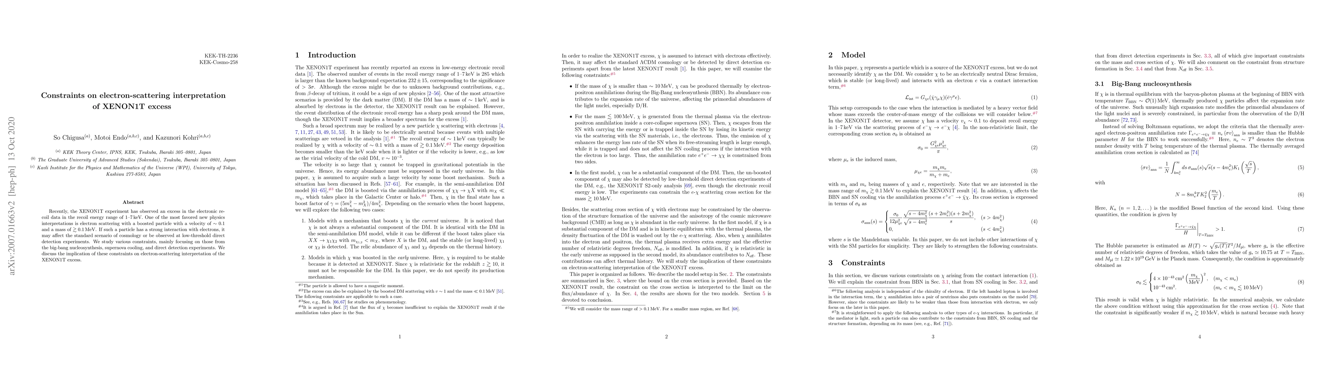 A study investigates constraints on a hypothetical particle causing XENON1T excess, focusing on big-bang nucleosynthesis, supernova cooling, and direct detection experiments.