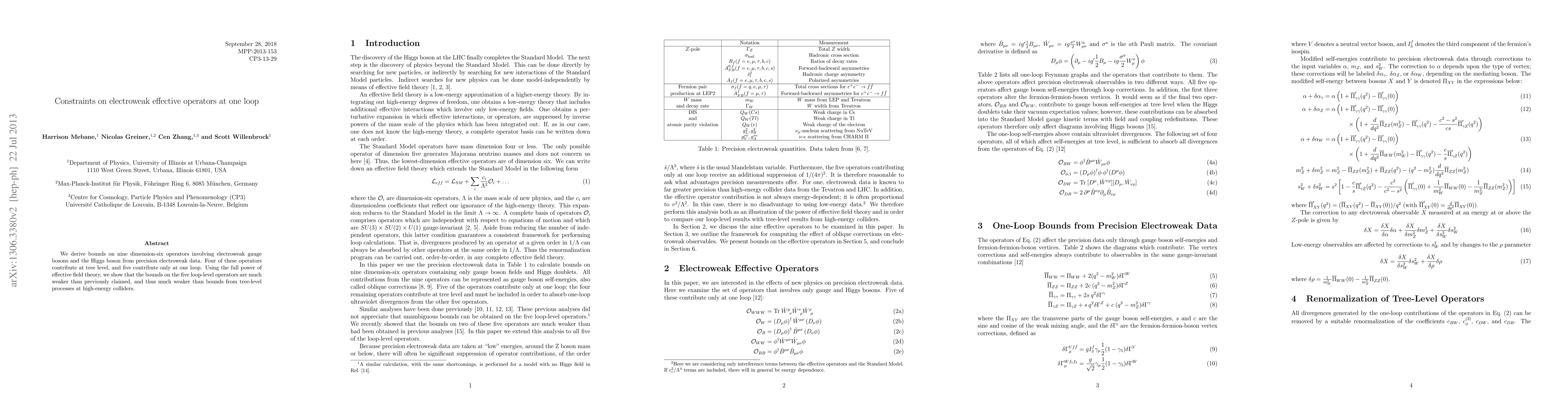 This paper derives improved constraints on nine dimension-six electroweak effective operators from precision electroweak data, showing that bounds on five loop-level operators are significantly weaker than previously thought, contrasting with stronger tree-level collider bounds.