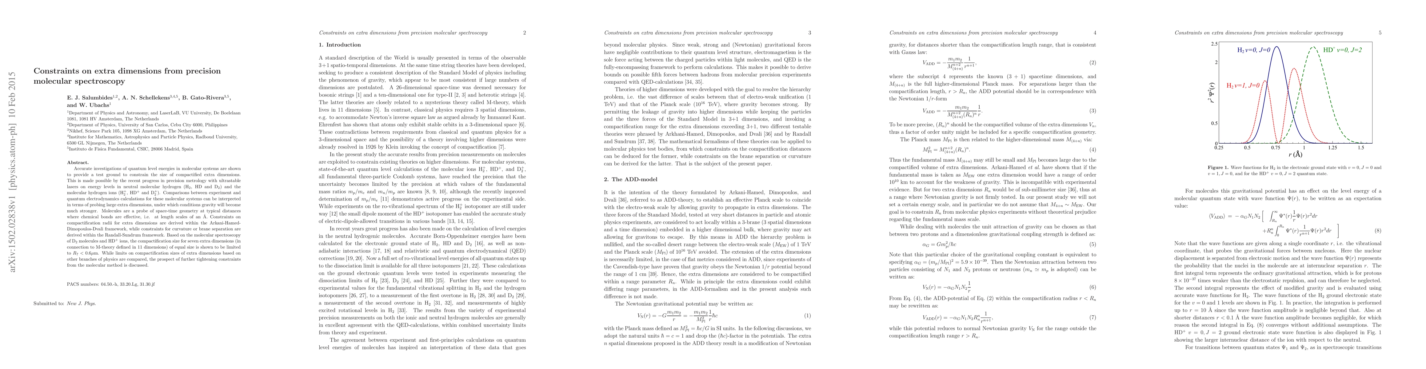This paper demonstrates how precision molecular spectroscopy can constrain the size of compactified extra dimensions, using ultrastable lasers to measure energy levels in hydrogen and molecular hydrogen ions. It derives limits on the compactification size for seven extra dimensions, showing $R_7 < 0.6 \mu$m, and discusses the potential for further improvements in these constraints through molecular methods.
