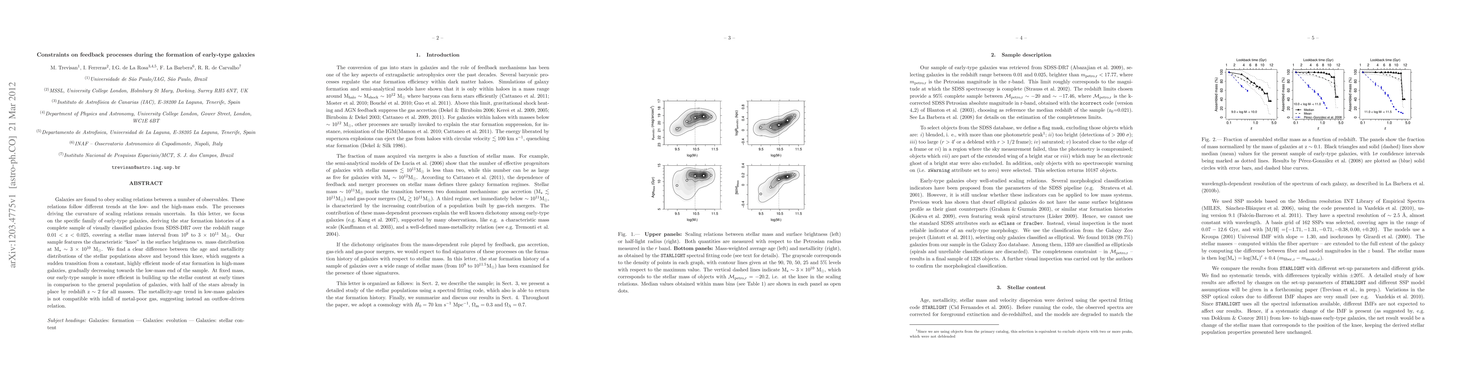 This paper investigates the star formation histories of early-type galaxies, finding a "knee" in the surface brightness vs. mass distribution. It reveals a transition in star formation efficiency, with high-mass galaxies experiencing a sudden shift in age and metallicity distributions, indicating different feedback processes at play.