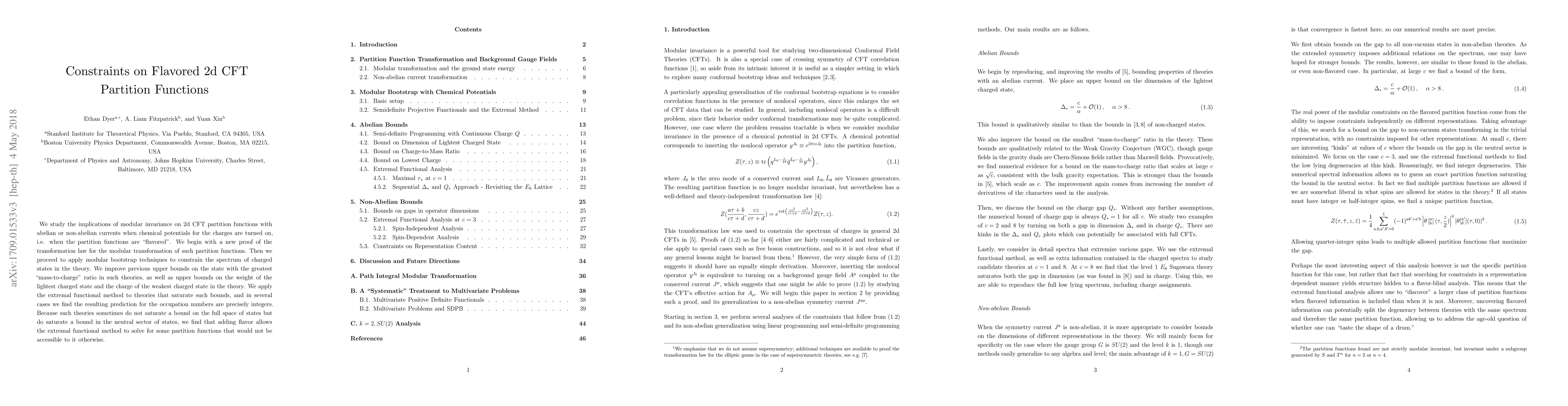 We study the implications of modular invariance on 2d CFT partition functions with abelian or non-abelian currents when chemical potentials for the charges are turned on, i.e. when the partition functions are "flavored". We begin with a new proof of the transformation law for the modular transformation of such partition functions. Then we proceed to apply modular bootstrap techniques to constrain the spectrum of charged states in the theory. We improve previous upper bounds on the state with the greatest "mass-to-charge" ratio in such theories, as well as upper bounds on the weight of the lightest charged state and the charge of the weakest charged state in the theory. We apply the extremal functional method to theories that saturate such bounds, and in several cases we find the resulting prediction for the occupation numbers are precisely integers. Because such theories sometimes do not saturate a bound on the full space of states but do saturate a bound in the neutral sector of states, we find that adding flavor allows the extremal functional method to solve for some partition functions that would not be accessible to it otherwise.