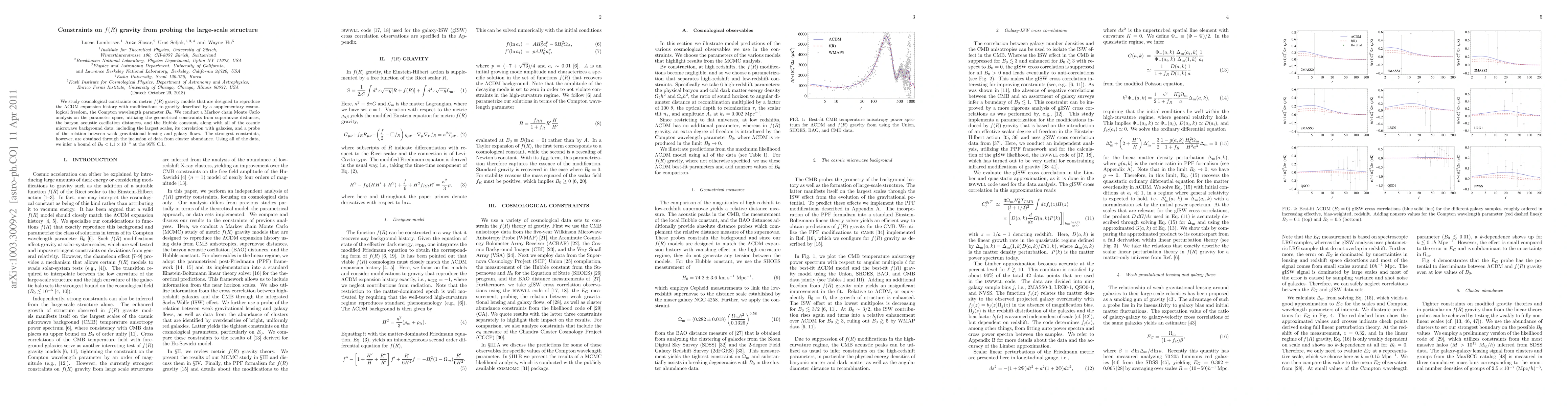This research uses Markov Chain Monte Carlo analysis to constrain f(R) gravity models, which aim to replicate LCDM expansion history with modified gravity via B_0 parameter. Key findings include tightest constraints from cluster abundance data, resulting in B_0<0.0011 at 95% C.L., indicating strong support for LCDM model over f(R) alternatives.