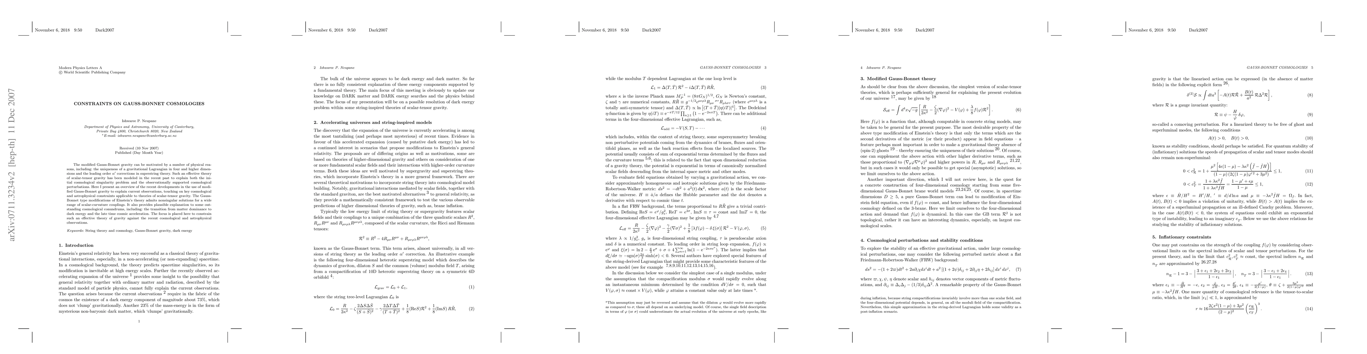 Modified Gauss-Bonnet gravity offers a plausible explanation for cosmological phenomena like dark energy and cosmic acceleration, but its constraints are tested against recent observations to determine its validity.
