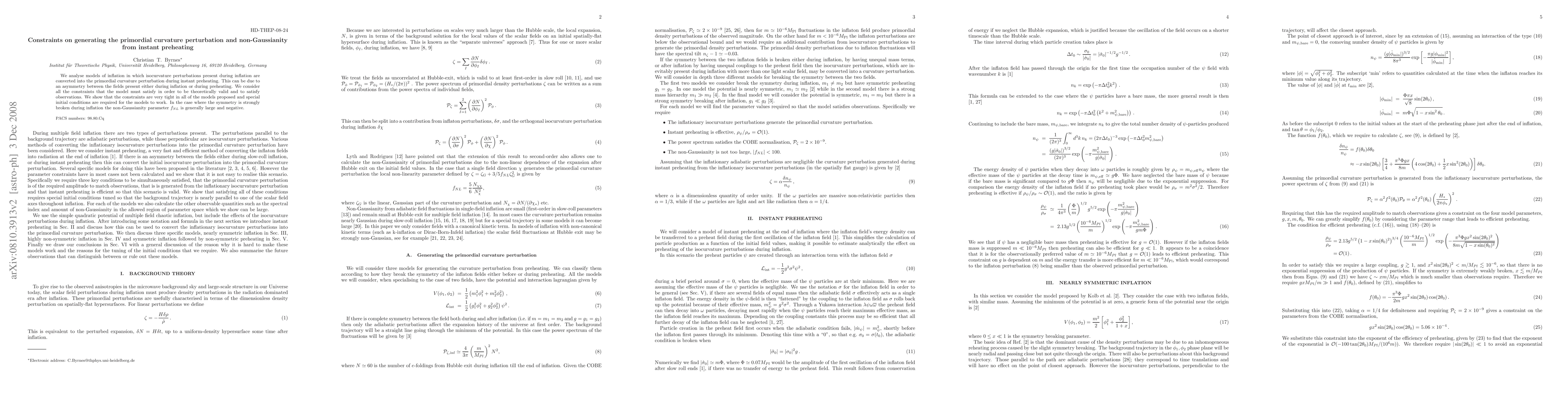 This paper examines inflationary models where isocurvature perturbations are transformed into the primordial curvature perturbation via instant preheating. It finds that stringent constraints limit the viability of these models, requiring special initial conditions and often resulting in large, negative non-Gaussianity.