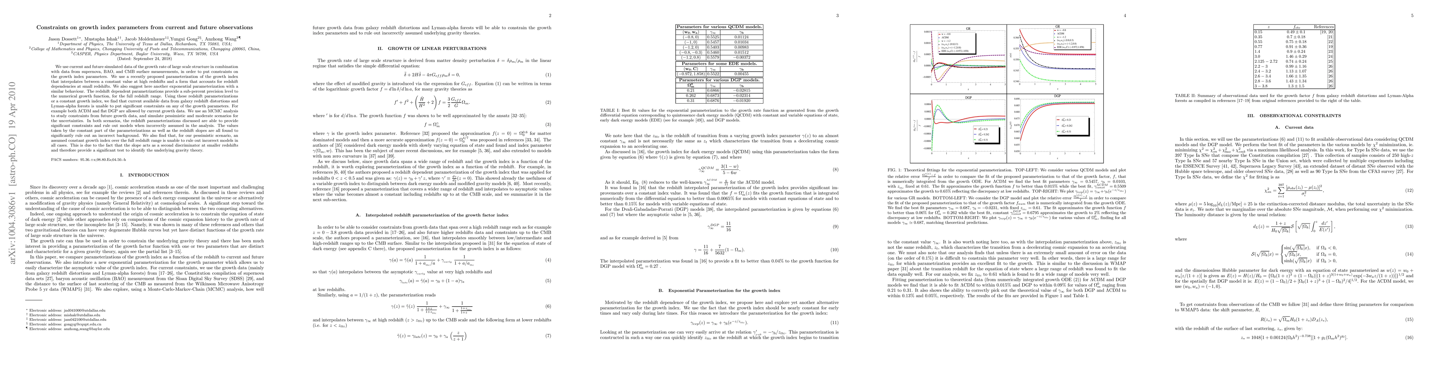 This paper uses current and future observational data to constrain growth index parameters, employing redshift-dependent parameterizations that achieve sub-percent precision. Current data from galaxy redshift distortions and Lyman-alpha forests do not significantly constrain these parameters, but future data, especially with improved precision, will be able to rule out incorrect models and identify the underlying gravity theory.