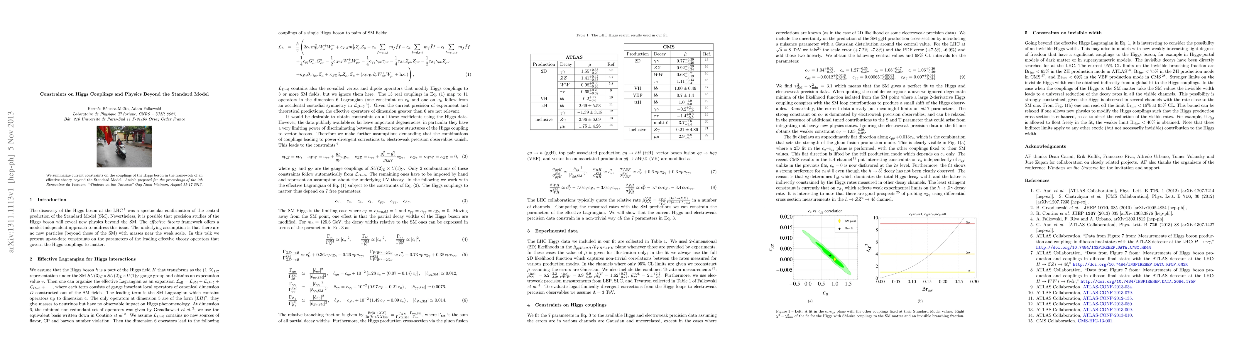 We summarize current constraints on the couplings of the Higgs boson in the framework of an effective theory beyond the Standard Model.