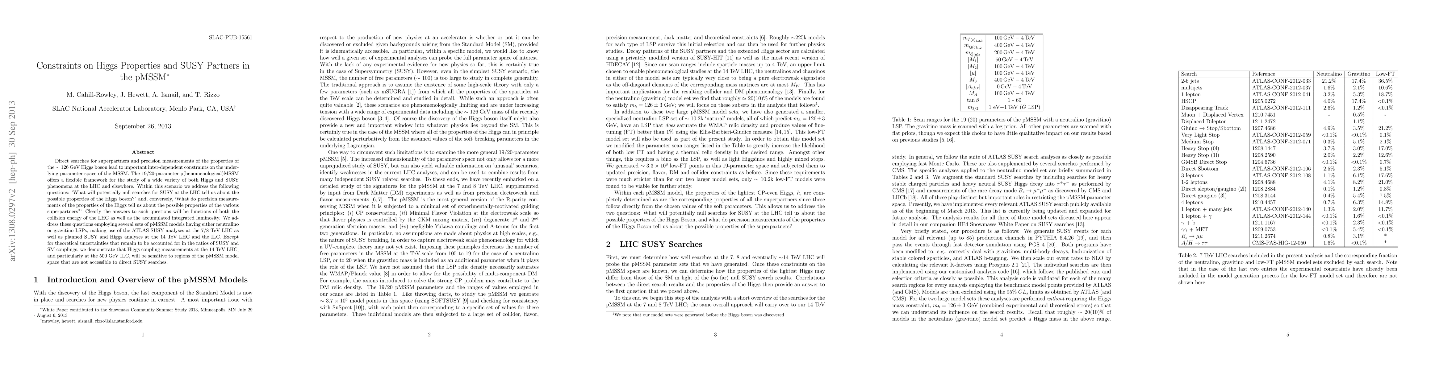 This paper investigates how constraints from direct SUSY searches and precision Higgs measurements influence the phenomenological MSSM (pMSSM) parameter space. It finds that while LHC and future collider data can reveal properties of the Higgs not detectable via direct SUSY searches, theoretical uncertainties in SUSY-Standard Model coupling ratios remain.