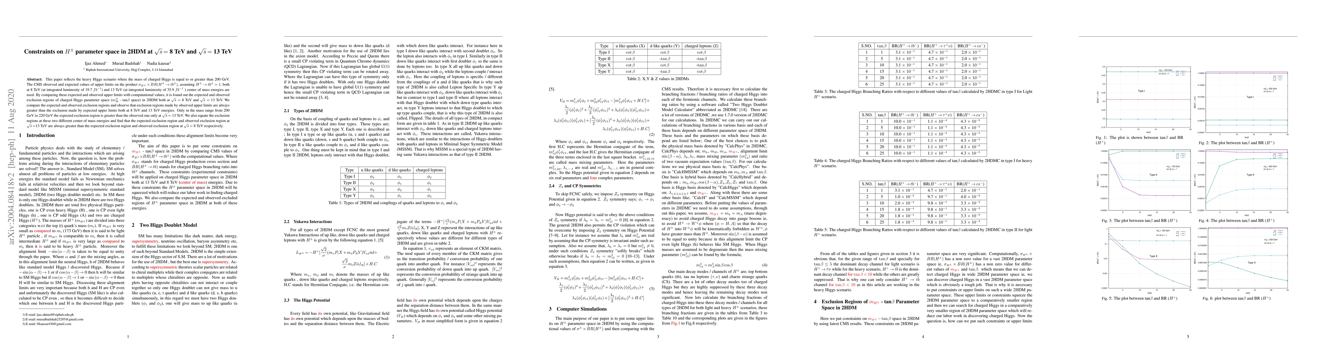 This paper examines the charged Higgs ($H^\pm$) parameter space in the 2HDM model at 8 TeV and 13 TeV, finding that observed exclusion regions at both energies are larger than expected, with the 13 TeV exclusion regions surpassing those at 8 TeV. The study highlights discrepancies between observed and expected upper limits on the charged Higgs decay into top and bottom quarks, revealing insights into the heavy Higgs scenario.