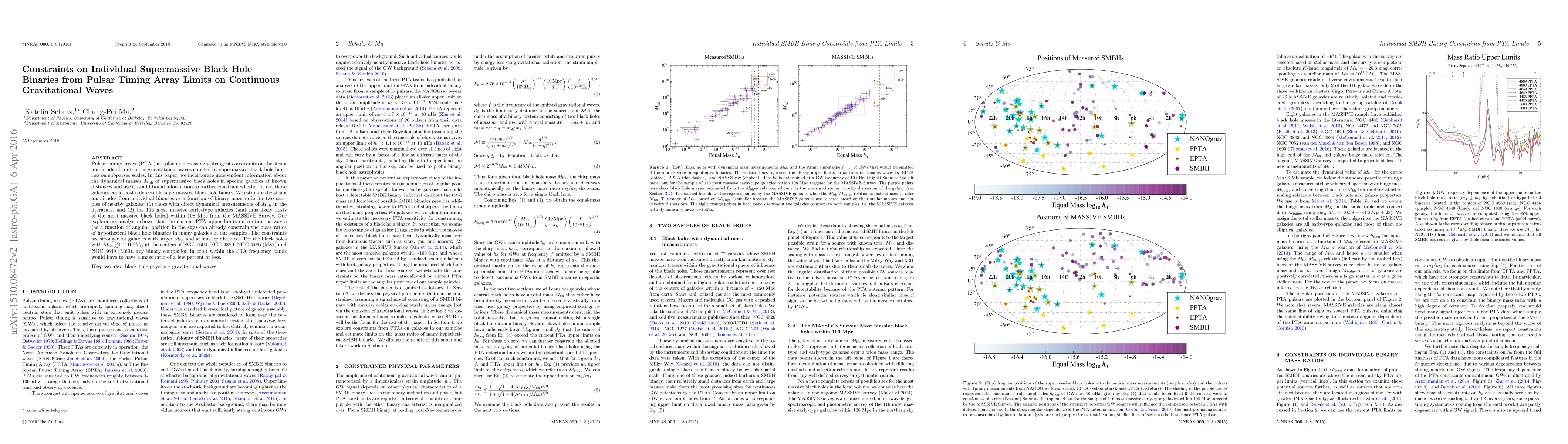 This paper uses pulsar timing arrays to constrain the strain amplitude of continuous gravitational waves from supermassive black hole binaries, incorporating dynamical mass data to further refine these constraints. Current PTA limits already restrict the mass ratios of potential binaries in nearby galaxies, especially for those with larger masses and closer distances.