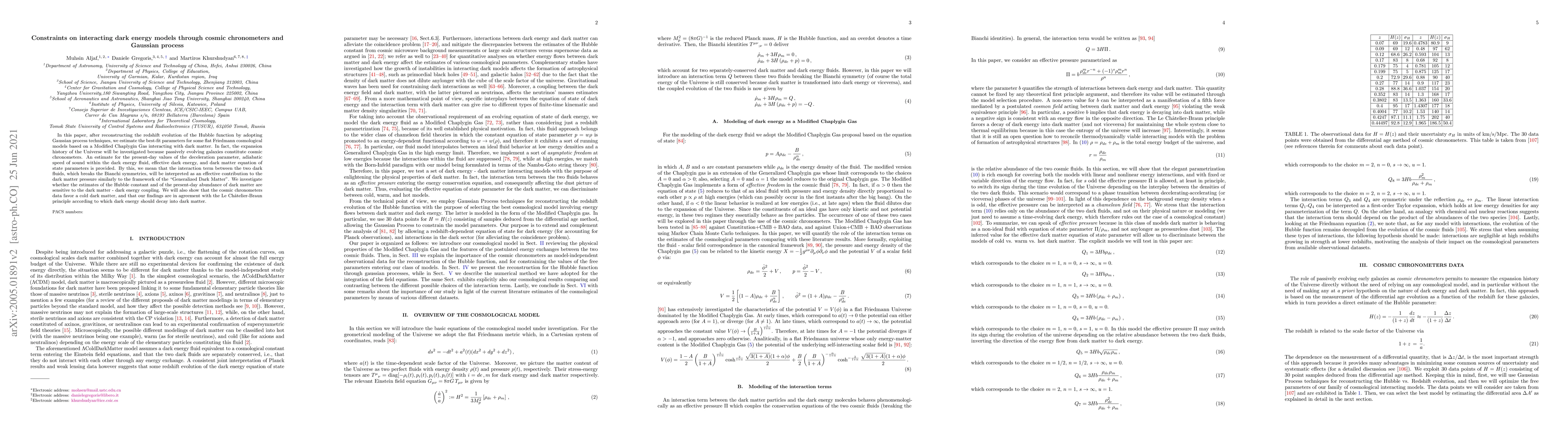This paper uses Gaussian process techniques to reconstruct the Hubble function and estimates parameters for interacting dark energy models based on Modified Chaplygin Gas. It finds that cosmic chronometers favor a cold dark matter scenario and that the interaction between dark matter and dark energy aligns with the Le Ch\^atelier-Braun principle.