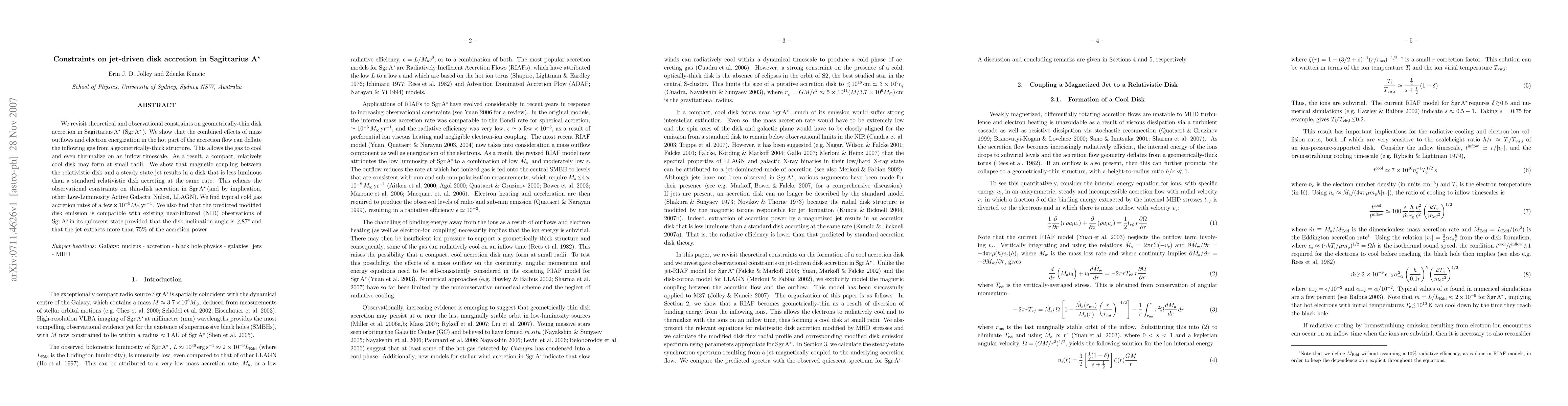 We revisit theoretical and observational constraints on geometrically-thin disk accretion in Sagittarius A* (Sgr A*). We show that the combined effects of mass outflows and electron energization in the hot part of the accretion flow can deflate the inflowing gas from a geometrically-thick structure. This allows the gas to cool and even thermalize on an inflow timescale. As a result, a compact, relatively cool disk may form at small radii. We show that magnetic coupling between the relativistic disk and a steady-state jet results in a disk that is less luminous than a standard relativistic disk accreting at the same rate. This relaxes the observational constraints on thin-disk accretion in Sgr A* (and by implication, other Low-Luminosity Active Galactic Nulcei, LLAGN). We find typical cold gas accretion rates of a few * 10^{-9} solar masses / yr. We also find that the predicted modified disk emission is compatible with existing near-infrared (NIR) observations of Sgr A* in its quiescent state provided that the disk inclination angle is > 87 degrees and that the jet extracts more than 75% of the accretion power.