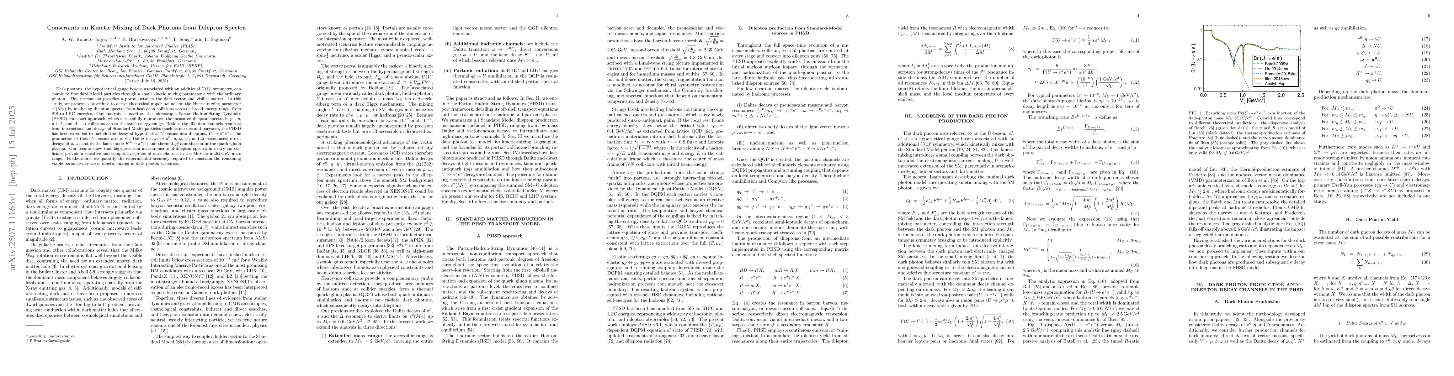 The paper presents an advanced application of the PHSD transport approach to constrain the kinetic mixing parameter of dark photons using dilepton spectra from heavy-ion collisions, offering a new probe for dark sector physics.