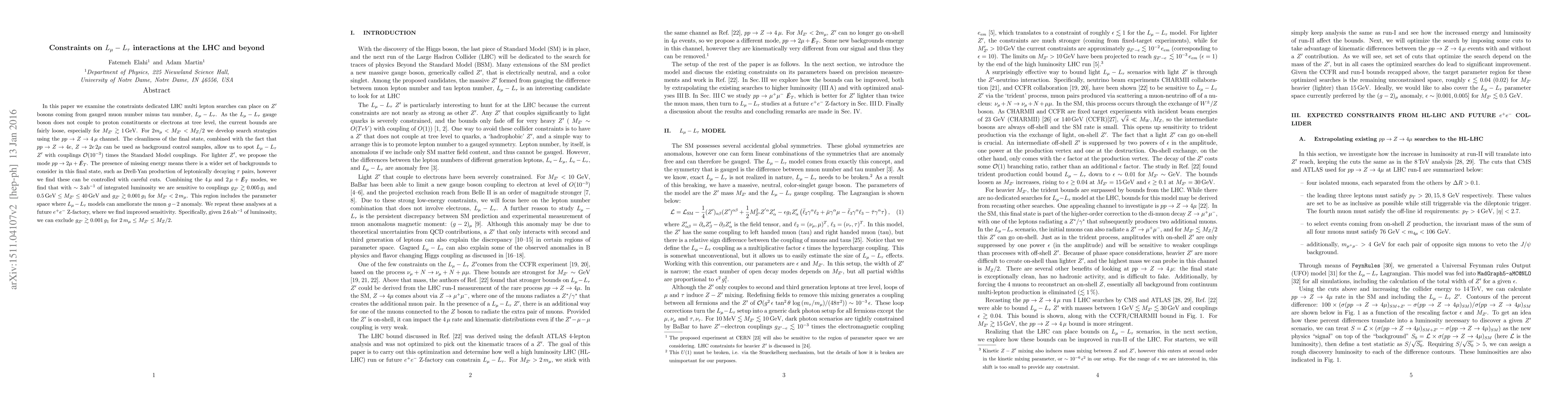 In this paper we examine the constraints dedicated LHC multi lepton searches can place on $Z'$ bosons coming from gauged muon number minus tau number, $L_{\mu}-L_{\tau}$. As the $L_{\mu}-L_{\tau}$ gauge boson does not couple to proton constituents or electrons at tree level, the current bounds are fairly loose, especially for $M_{Z'} \gtrsim 1\, \rm GeV$. For $2m_{\mu} < M_{Z'} < M_Z/2$ we develop search strategies using the $pp \rightarrow Z \to 4\, \mu$ channel. The cleanliness of the final state, combined with the fact that $pp \to Z \to 4 e$, $Z \to 2e\,2\mu$ can be used as background control samples, allow us to spot $L_{\mu}-L_{\tau}$ $Z'$ with couplings $\mathcal O(10^{-3})$ times the Standard Model couplings. For lighter $Z'$, we propose the mode $pp \rightarrow 2\mu + \displaystyle{\not} E_T$. The presence of missing energy means there is a wider set of backgrounds to consider in this final state, such as Drell-Yan production of leptonically decaying $\tau$ pairs, however we find these can be controlled with careful cuts. Combining the $4\, \mu$ and $2\,\mu + \displaystyle{\not} E_T$ modes, we find that with $\sim3 \, \text{ab}^{-1}$ of integrated luminosity we are sensitive to couplings $g_{Z'} \gtrsim 0.005\, g_1$ and $0.5\, \rm GeV \le M_{Z'} \le 40\, \rm GeV$ and $g_{Z'} \gtrsim 0.001\, g_1$ for $M_{Z'} < 2\, m_{\mu}$. This region includes the parameter space where $L_{\mu}-L_{\tau}$ models can ameliorate the muon $g-2$ anomaly. We repeat these analyses at a future $e^+e^-$ Z-factory, where we find improved sensitivity. Specifically, given $2.6\, \rm ab^{-1}$ of luminosity, we can exclude $g_{Z'} \gtrsim 0.001\, g_1$ for $2\, m_{\mu} \le M_{Z'} \le M_Z/2$.