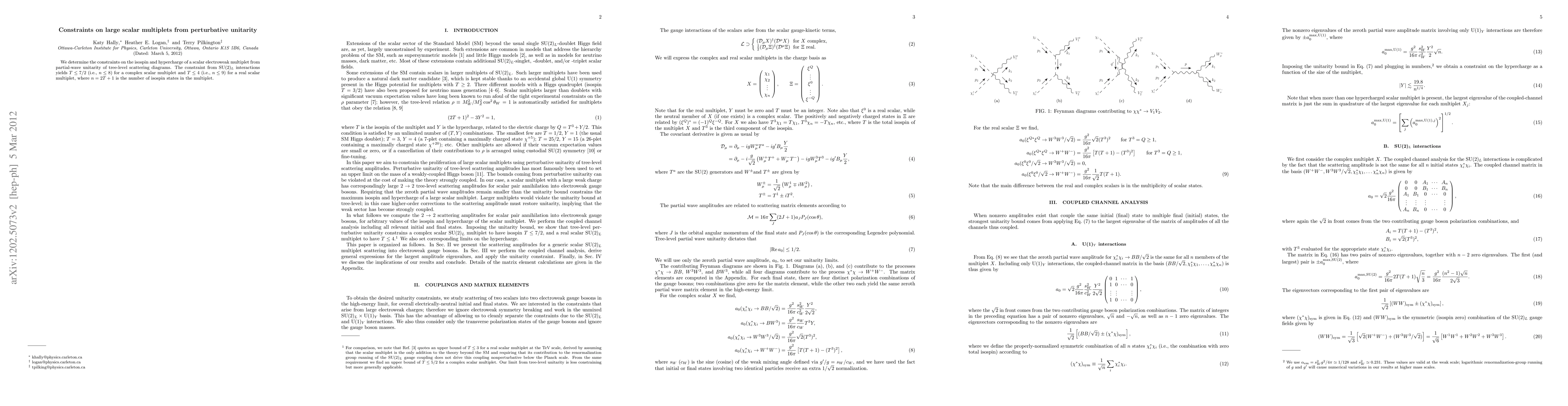 Research sets limits on a scalar multiplet's isospin and hypercharge for tree-level scattering diagrams, constraining it to have 7/2 or fewer isospin states.
