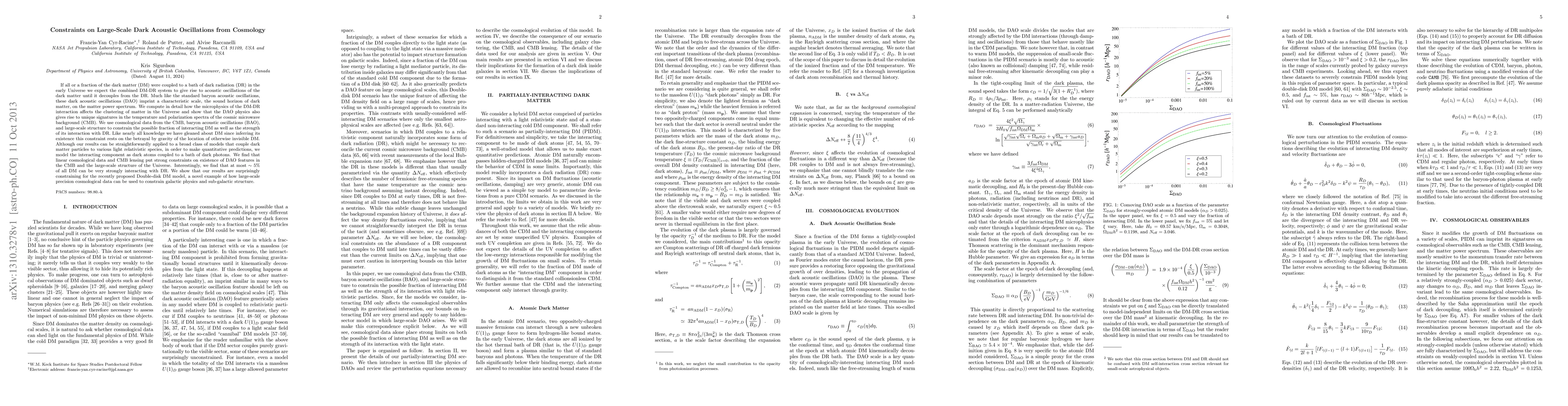 If all or a fraction of the dark matter (DM) were coupled to a bath of dark radiation (DR) in the early Universe we expect the combined DM-DR system to give rise to acoustic oscillations of the dark matter until it decouples from the DR. Much like the standard baryon acoustic oscillations, these dark acoustic oscillations (DAO) imprint a characteristic scale, the sound horizon of dark matter, on the matter power spectrum. We compute in detail how the microphysics of the DM-DR interaction affects the clustering of matter in the Universe and show that the DAO physics also gives rise to unique signatures in the temperature and polarization spectra of the cosmic microwave background (CMB). We use cosmological data from the CMB, baryon acoustic oscillations (BAO), and large-scale structure to constrain the possible fraction of interacting DM as well as the strength of its interaction with DR. Like nearly all knowledge we have gleaned about dark matter since inferring its existence this constraint rests on the betrayal by gravity of the location of otherwise invisible dark matter. Although our results can be straightforwardly applied to a broad class of models that couple dark matter particles to various light relativistic species, in order to make quantitative predictions, we model the interacting component as dark atoms coupled to a bath of dark photons. We find that linear cosmological data and CMB lensing put strong constraints on existence of DAO features in the CMB and the large-scale structure of the Universe. Interestingly, we find that at most ~5% of all DM can be very strongly interacting with DR. We show that our results are surprisingly constraining for the recently proposed Double-disk DM model, a novel example of how large-scale precision cosmological data can be used to constrain galactic physics and sub-galactic structure.